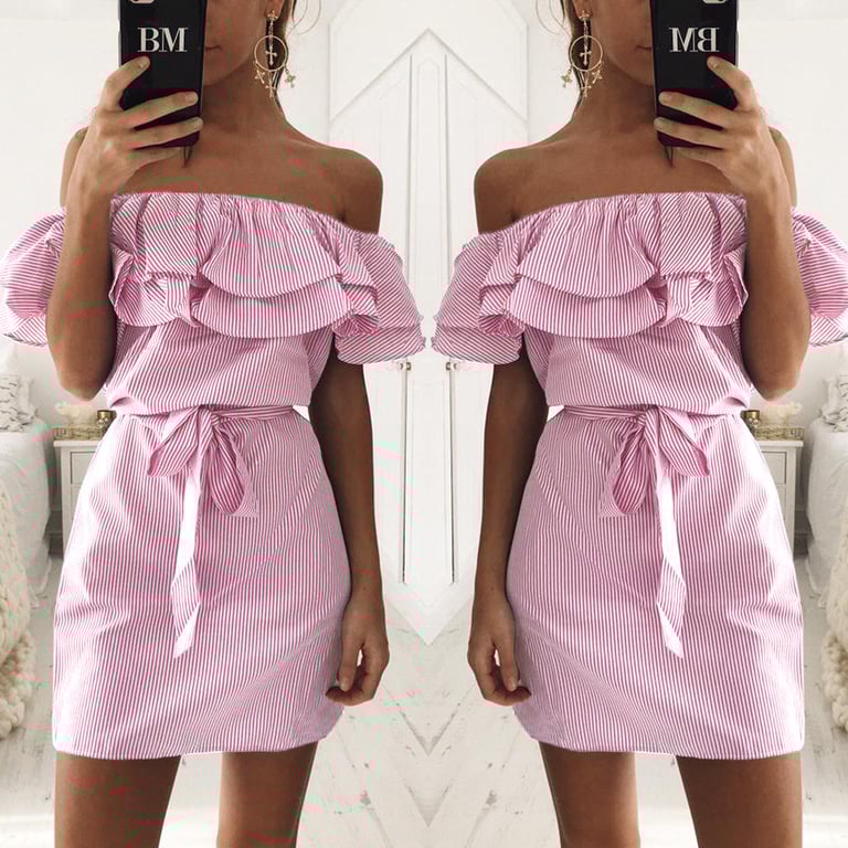 The striped pattern is the trend of this year. With this dress, you can't go wrong. It is suitable for any occasion. For work, a date, or a trip. The pleasant material and cut go well with any footwear.