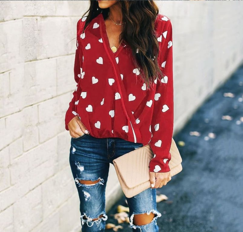 Light simple women's shirt with hearts