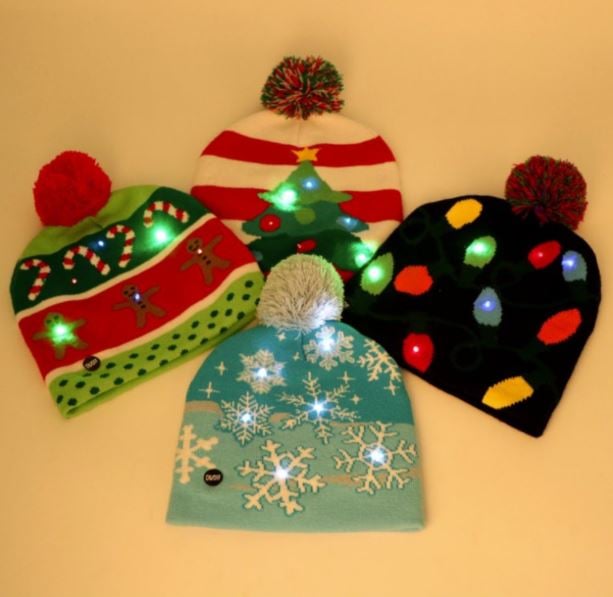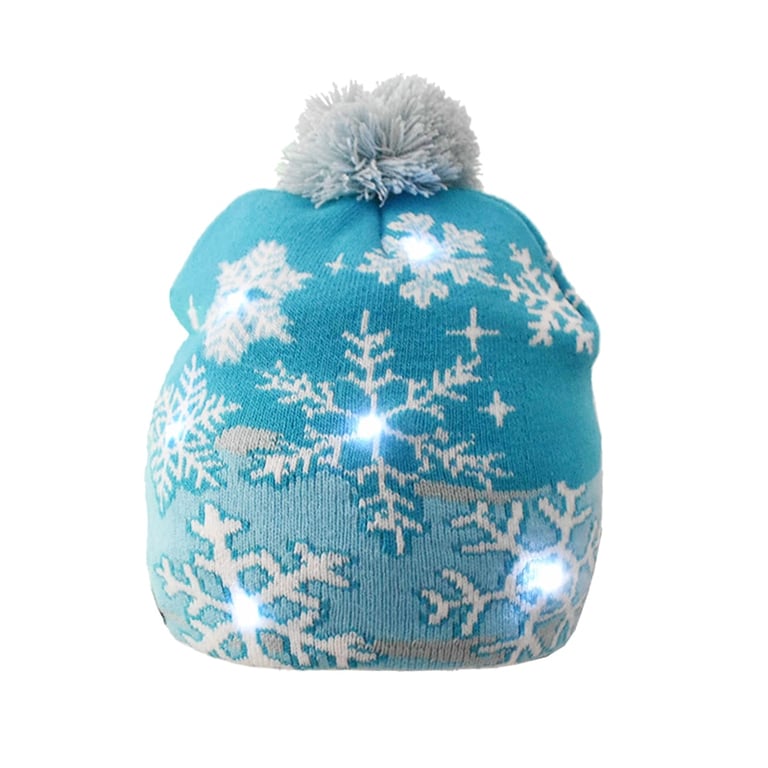 Light-up hat with pom-pom and Christmas design.