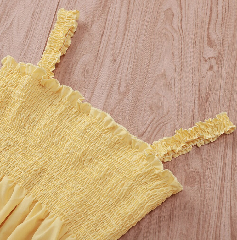 Light yellow interesting women's top with smocking.