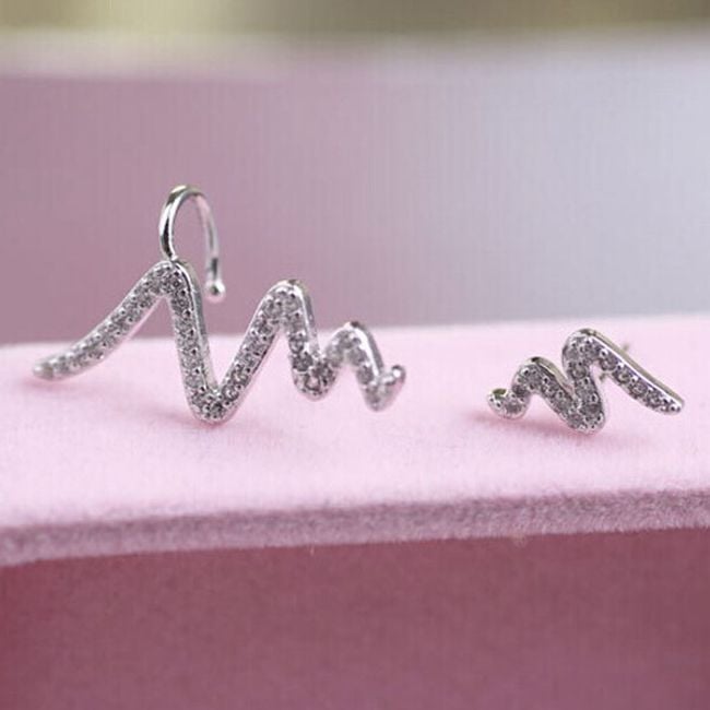 A fantastic piece of jewellery that will add flair to your outfit. The earrings are adorned with cut glass stones and are shaped like lightning bolts. The set includes one small and one large earring.