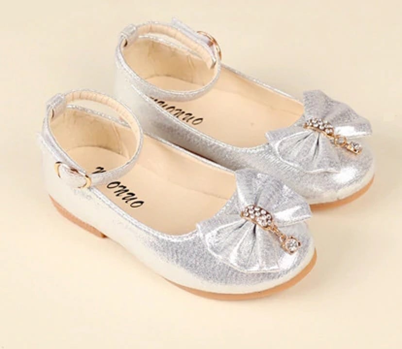 The ballerinas are sparkly and feature a bow adorned with rhinestones at the front.