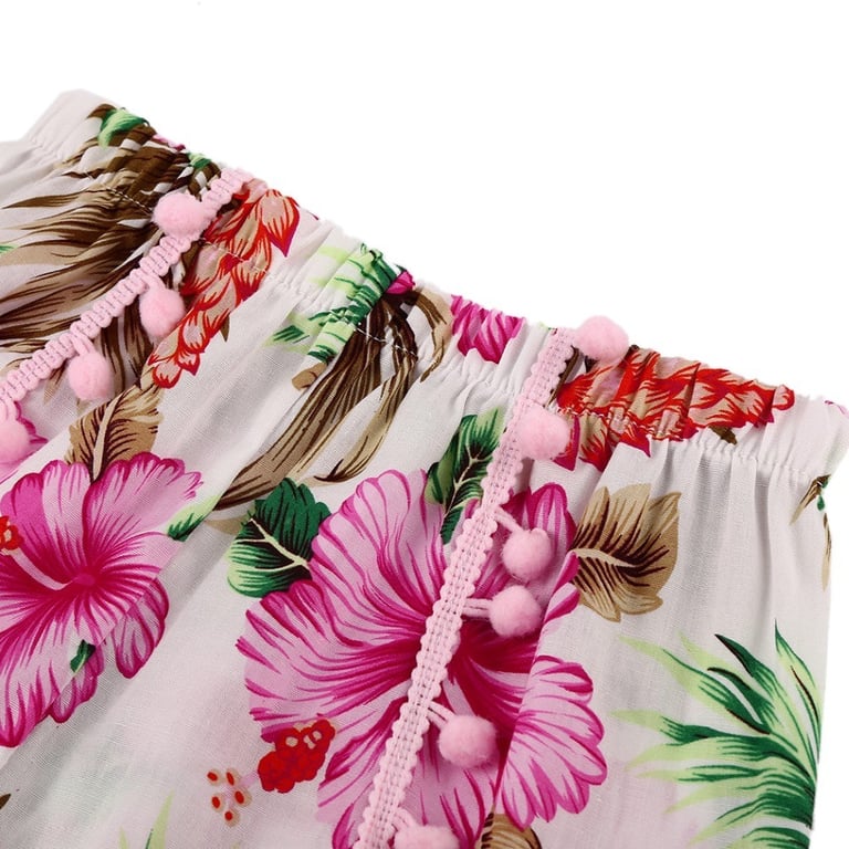 Beautiful girls' shorts with a floral print and fringes.