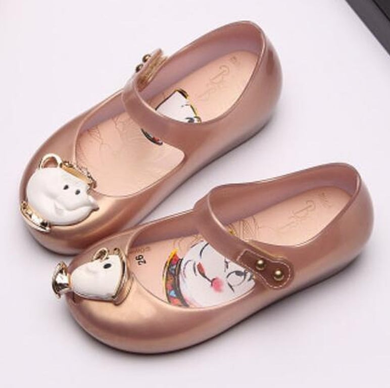 All little girls will love these rubber sandals featuring a teapot and cup from a fairy tale.
