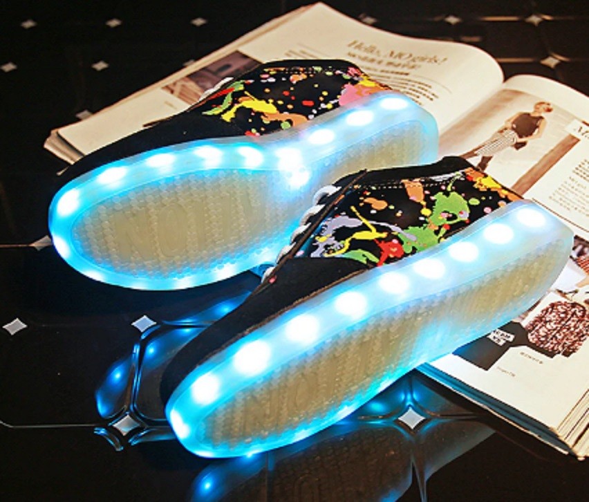 There are LED lights in the sole of these trainers, which can be charged via USB.