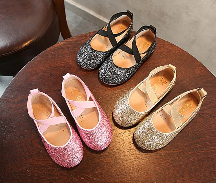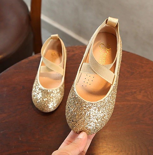 These girls' glitter ballet flats will look great on any young lady with a dress or skirt.