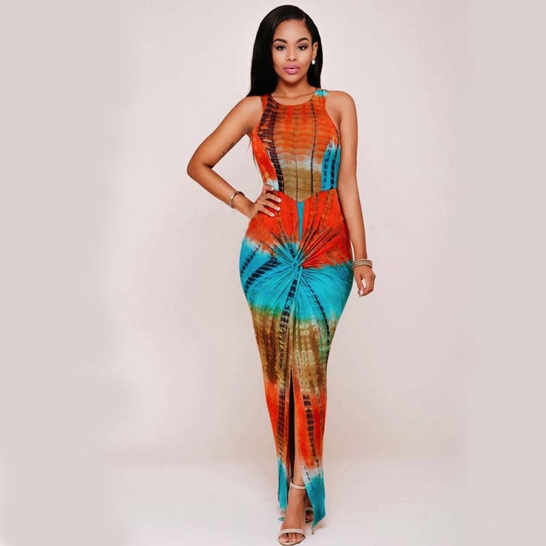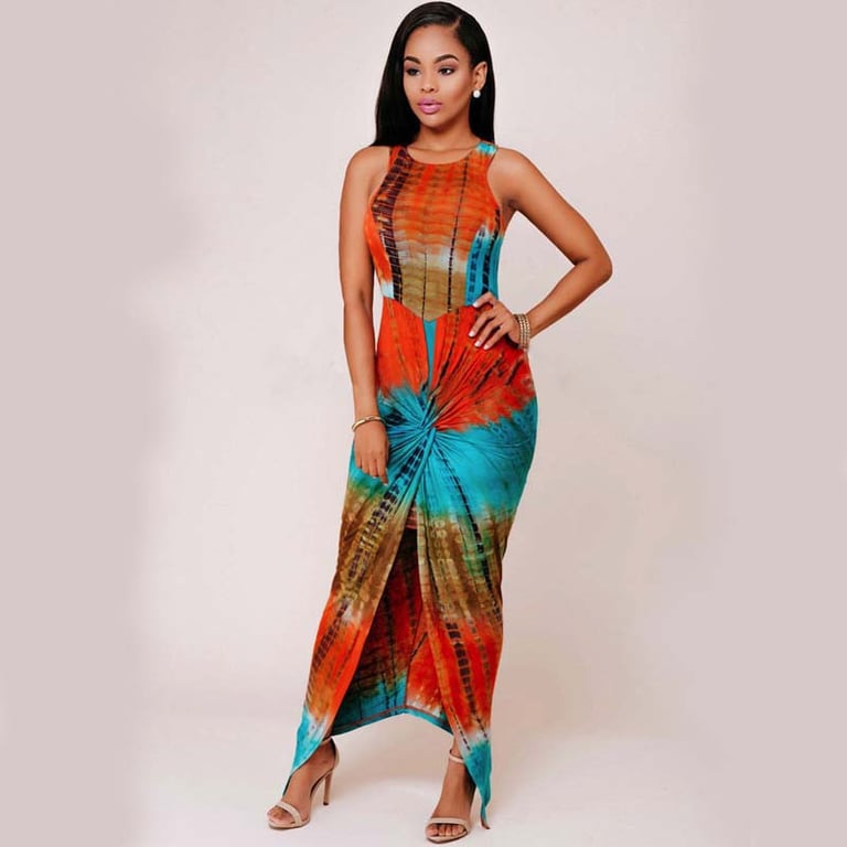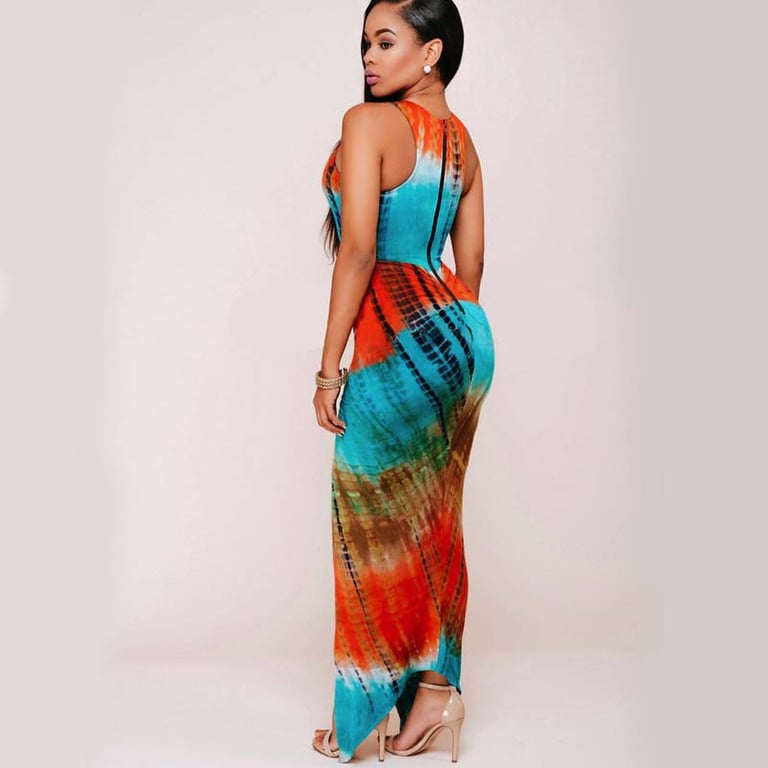 Women's long dress with a batik pattern, in which you will look great, and it will be perfect for warm spring days and summer.