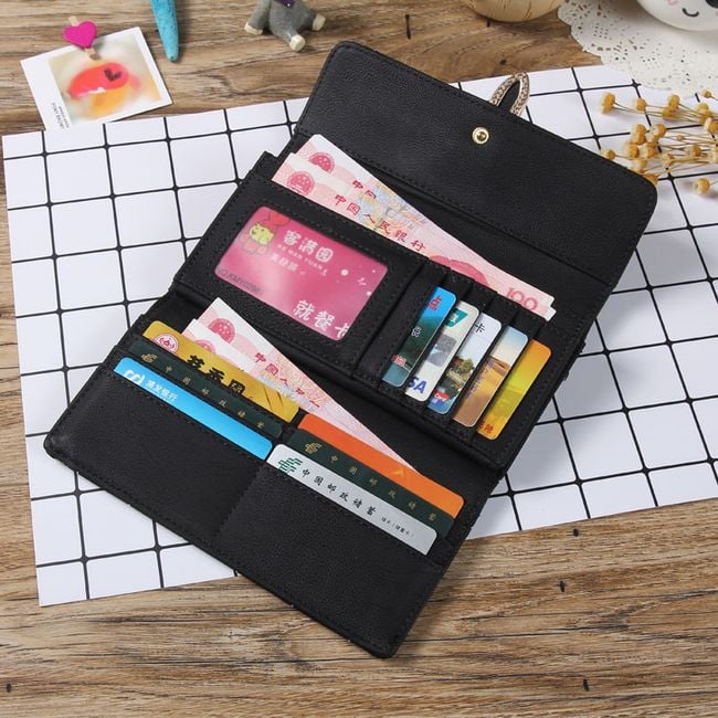 The wallet has a very elegant design and is adorned with a small strap.