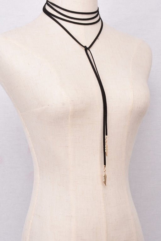 Long choker necklace with a feather