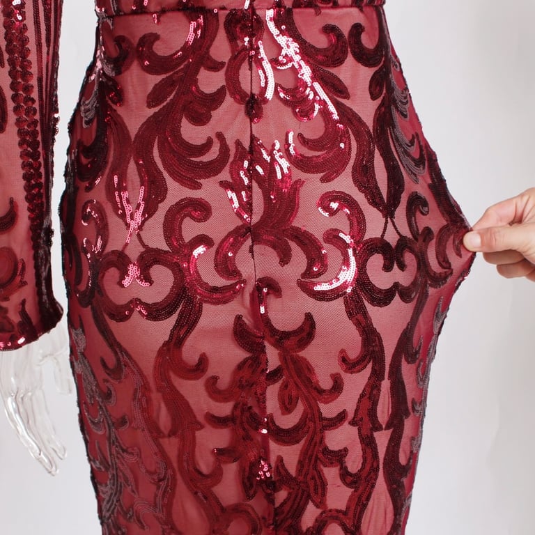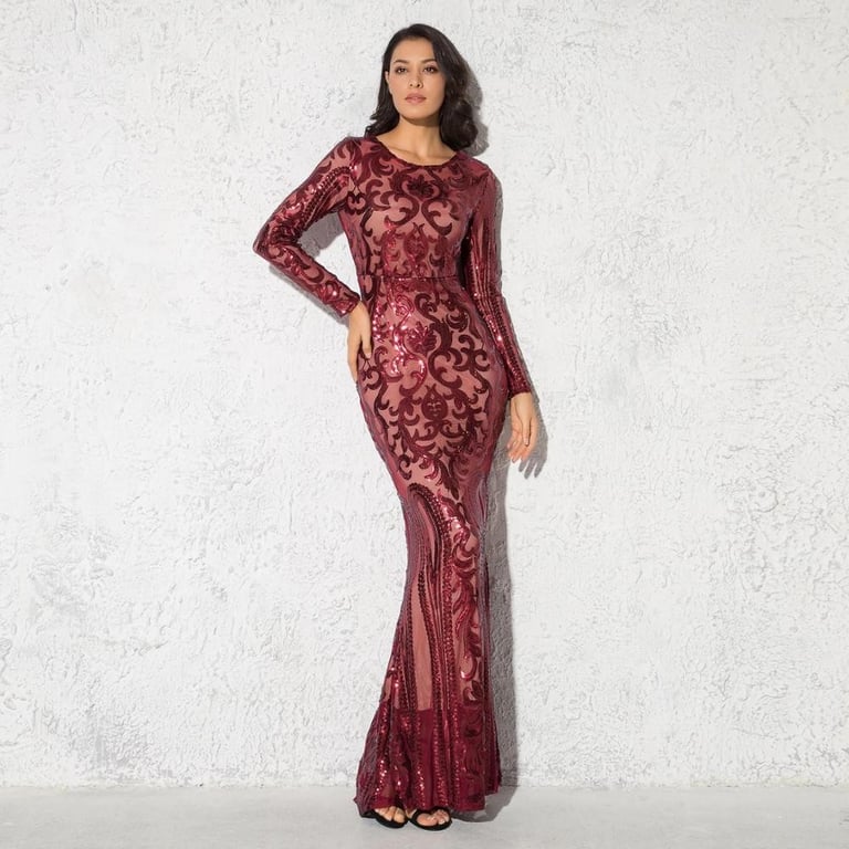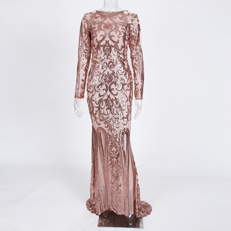 Luxurious long evening dress with sequin detailing.