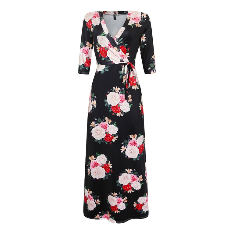 Women's long dress. Elegant half sleeves and a deep neckline!