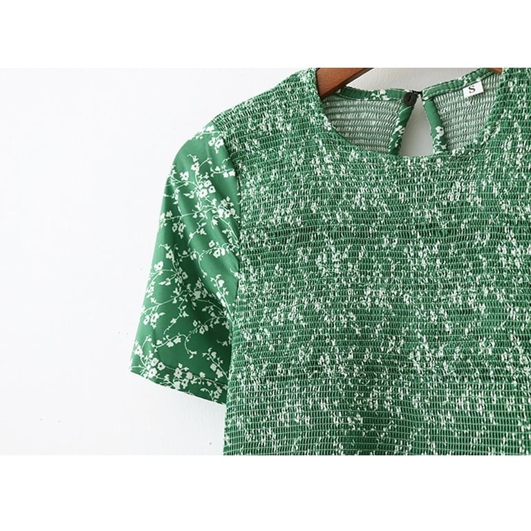 Short sleeves and a classic round neckline.