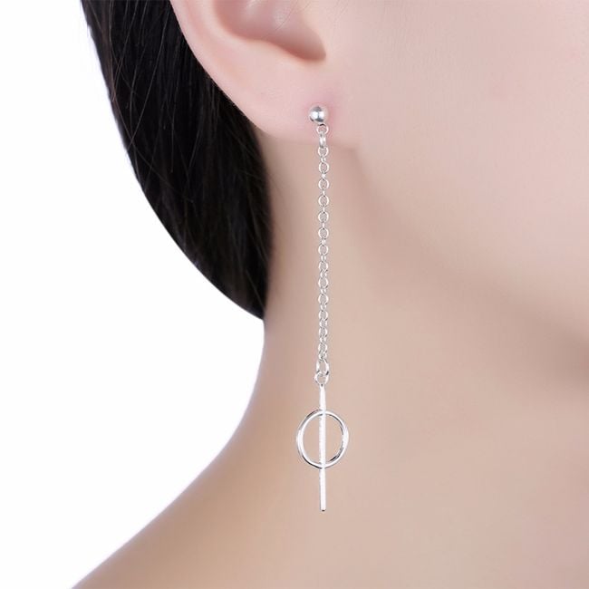 The earrings are silver in colour, nearly ten centimetres long, and are suitable as a beautiful accessory for many occasions.