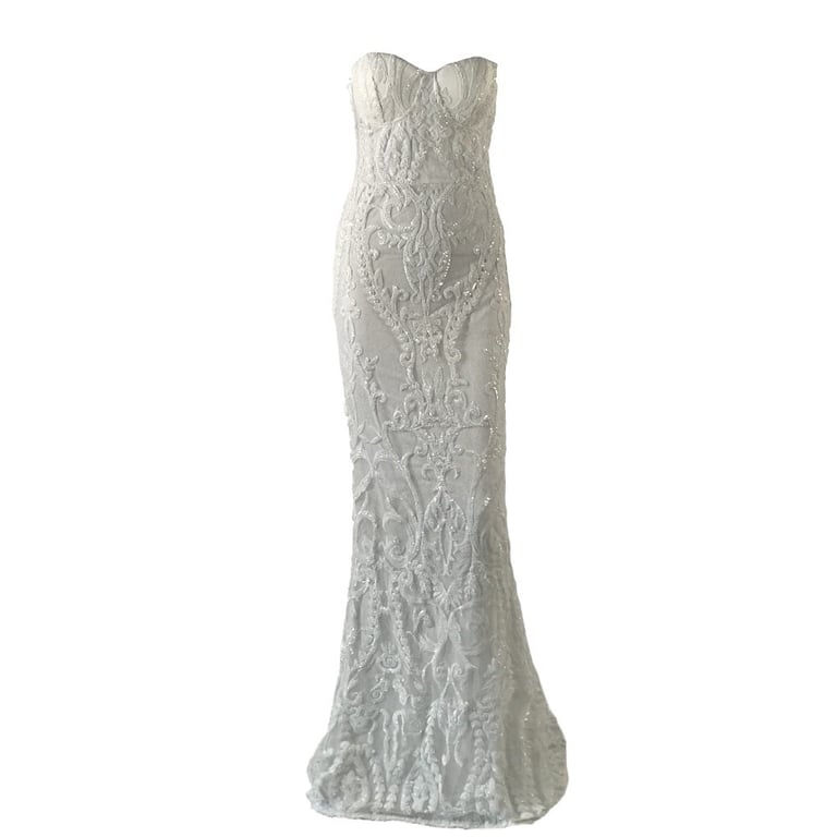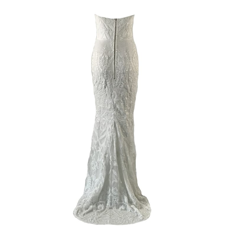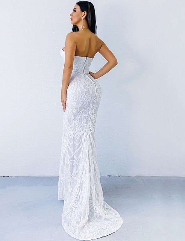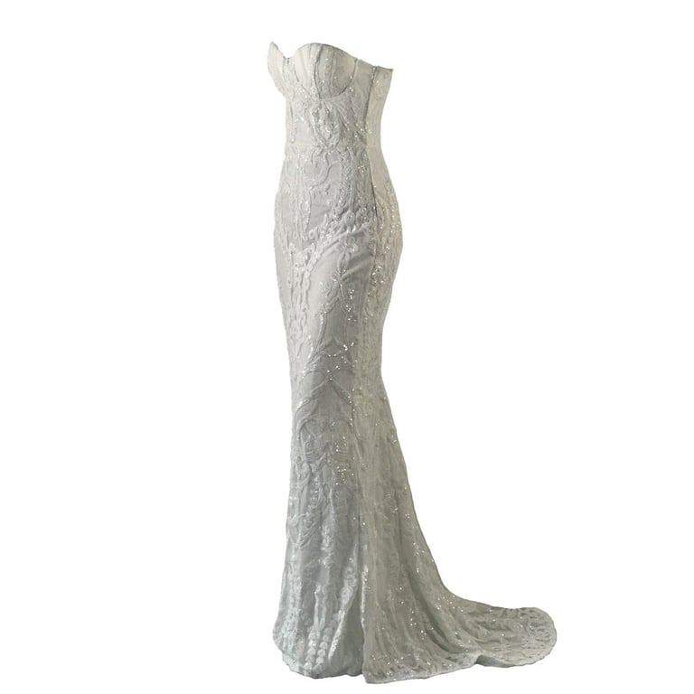 Luxury long lace dress with no straps.