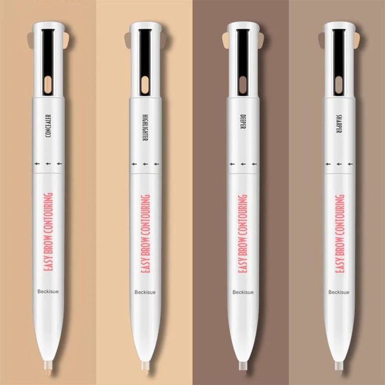 The pen includes a defining pencil, a filling pencil, a concealer, and a highlighter.