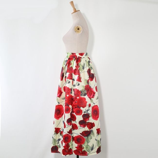 Long maxi skirt with rose print