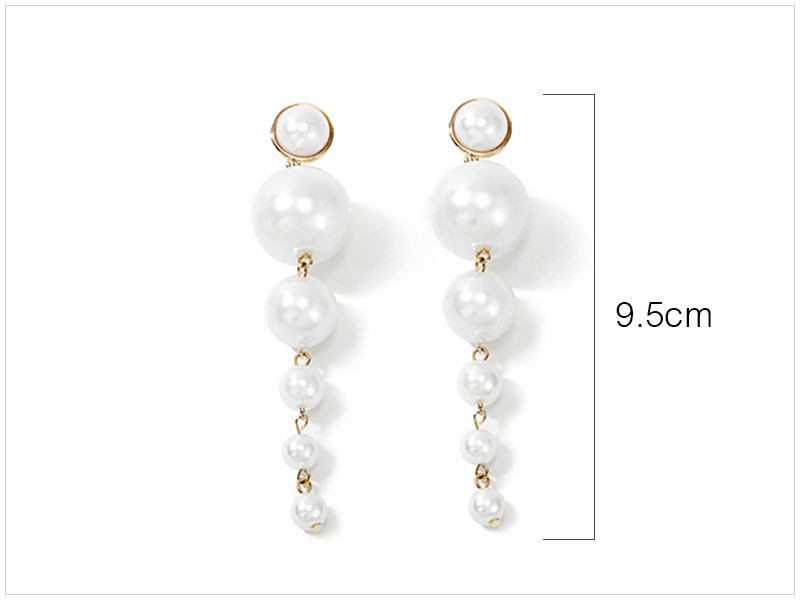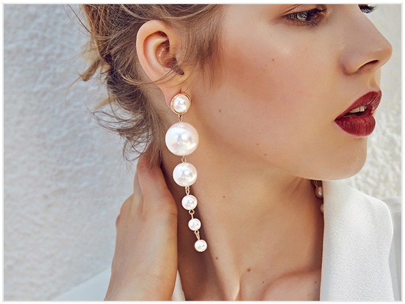 Long pearl earrings suitable not only as an accessory for wedding dresses but also for a suit or party dress.