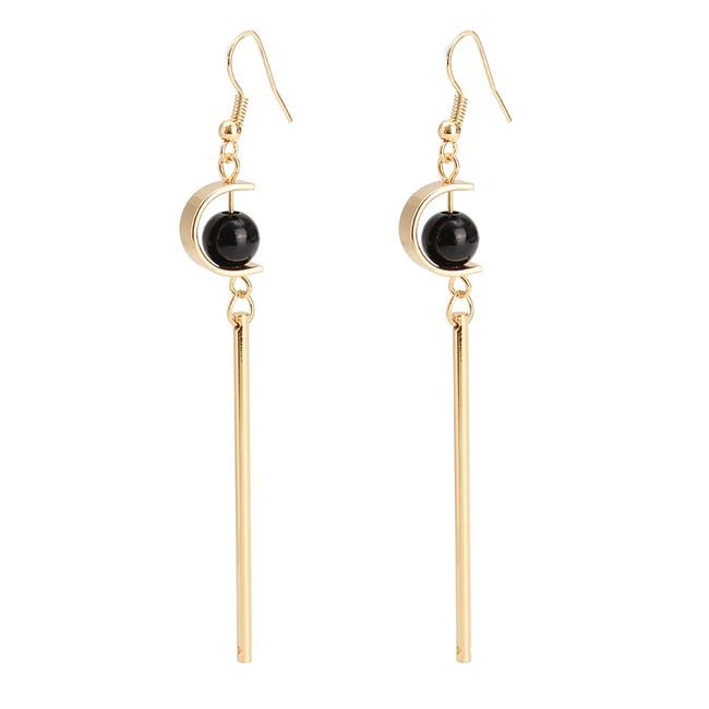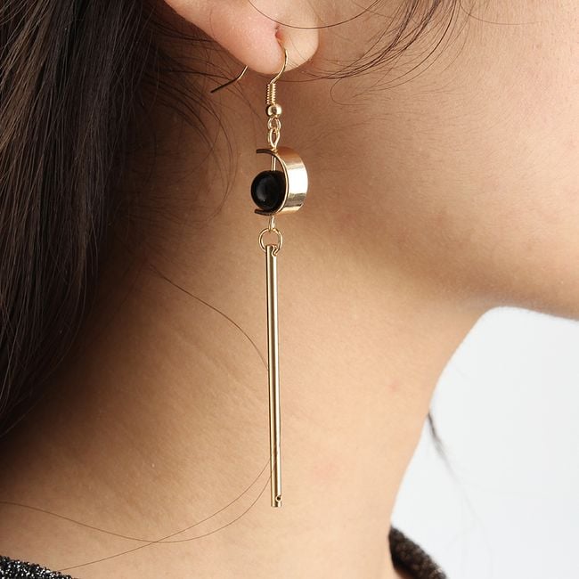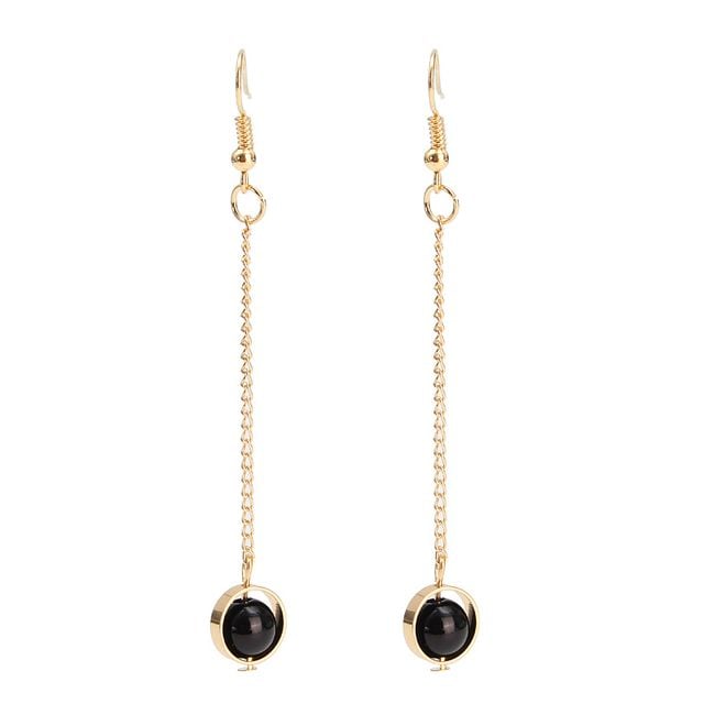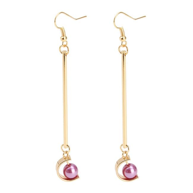Beautiful long gold-coloured earrings with a faceted gemstone. These retro-style earrings will be perfect for any ball or social event. They are suitable to combine with gold-coloured accessories and solid-coloured dresses. You can choose from four different variants.