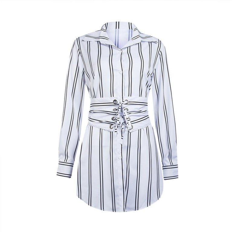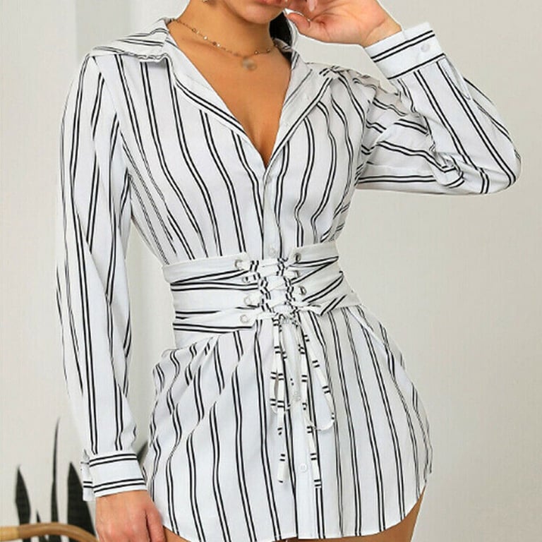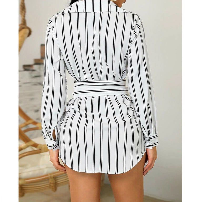 Women's shirt blouse in a longer cut with an attractive tie at the waist. The colour combination fits perfectly with any outfit.