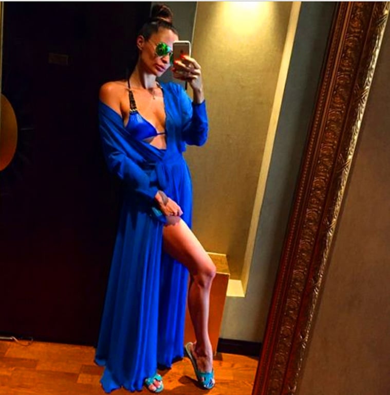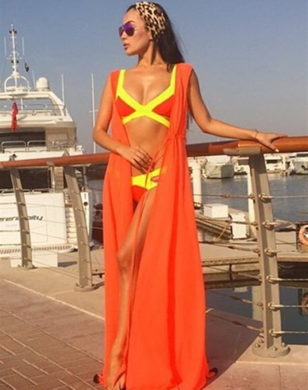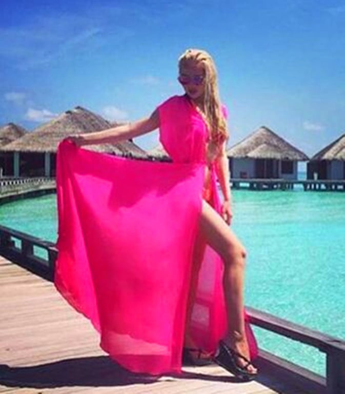 Long simple ruched summer beach dress with a slit.