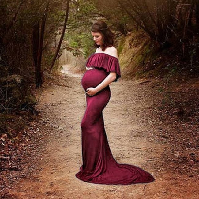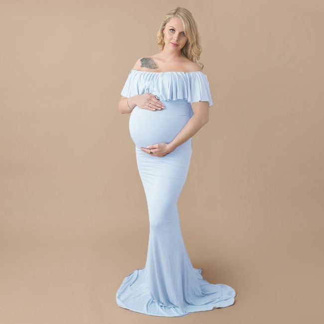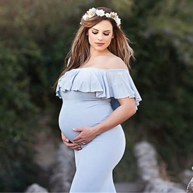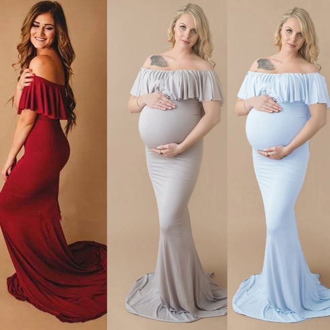 Pregnant women can also purchase elegant evening dresses. They are available in three colours and have no straps. They stay in place on the chest thanks to elastic bands.