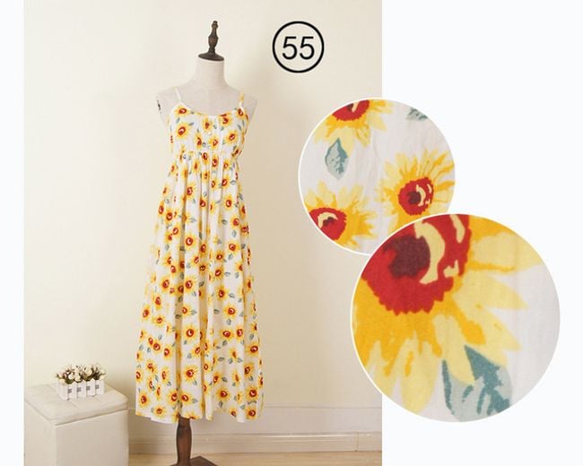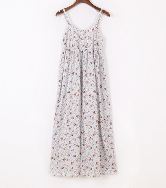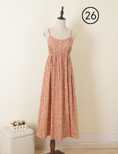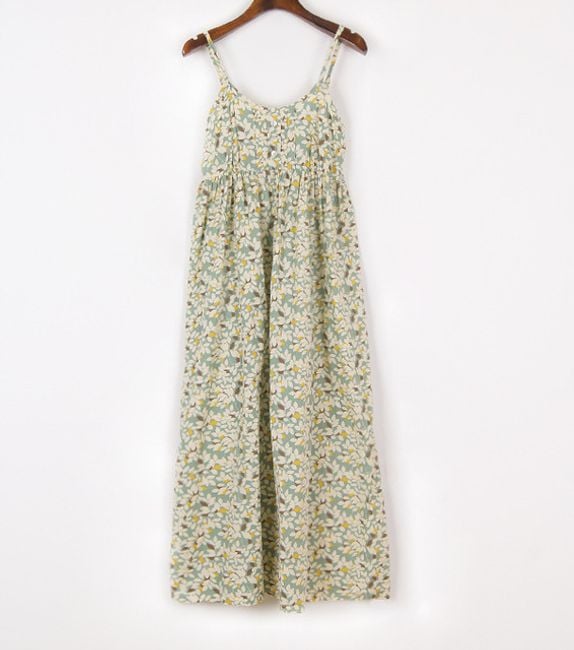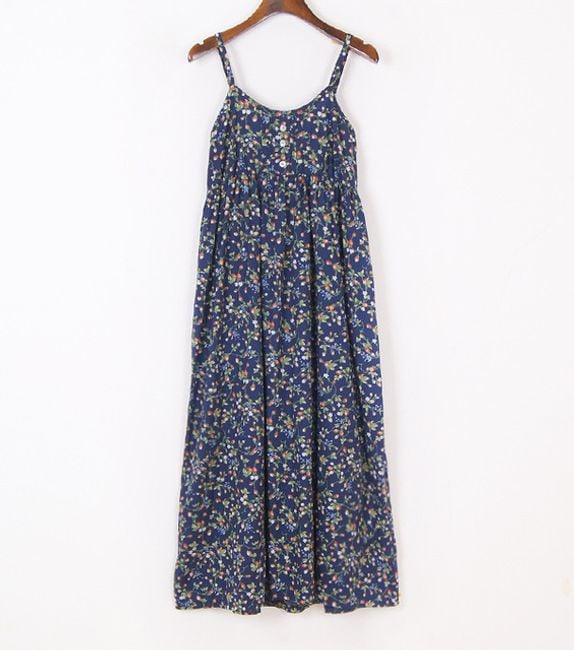 The dress has narrow straps and is ideal for summer.