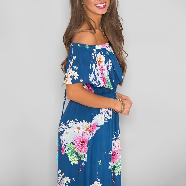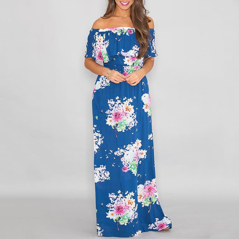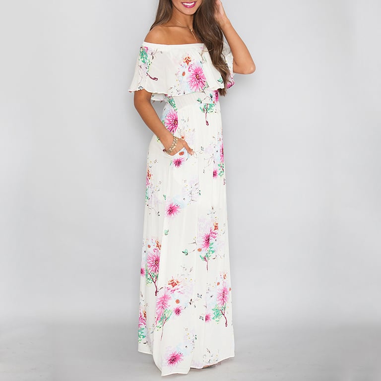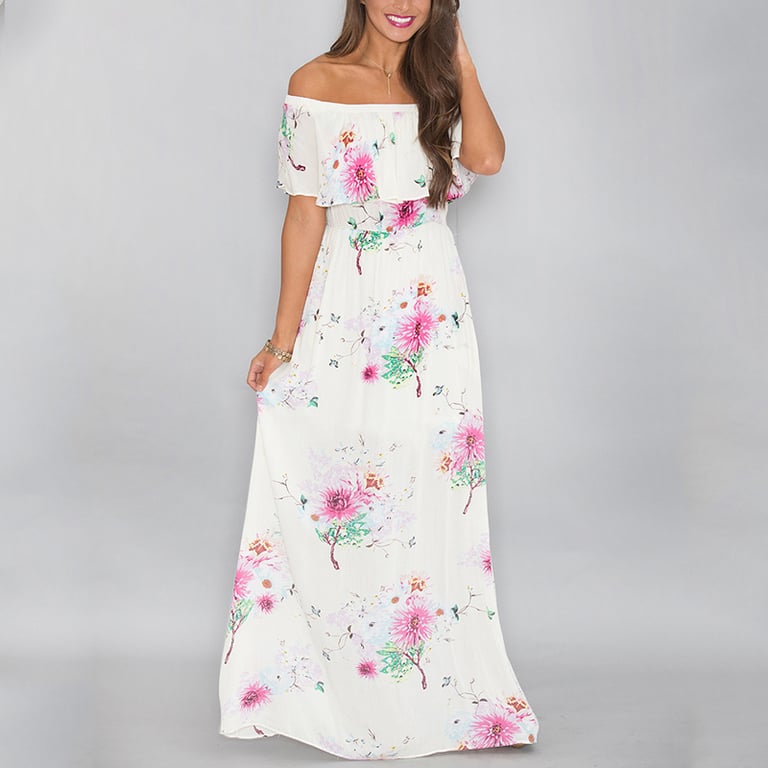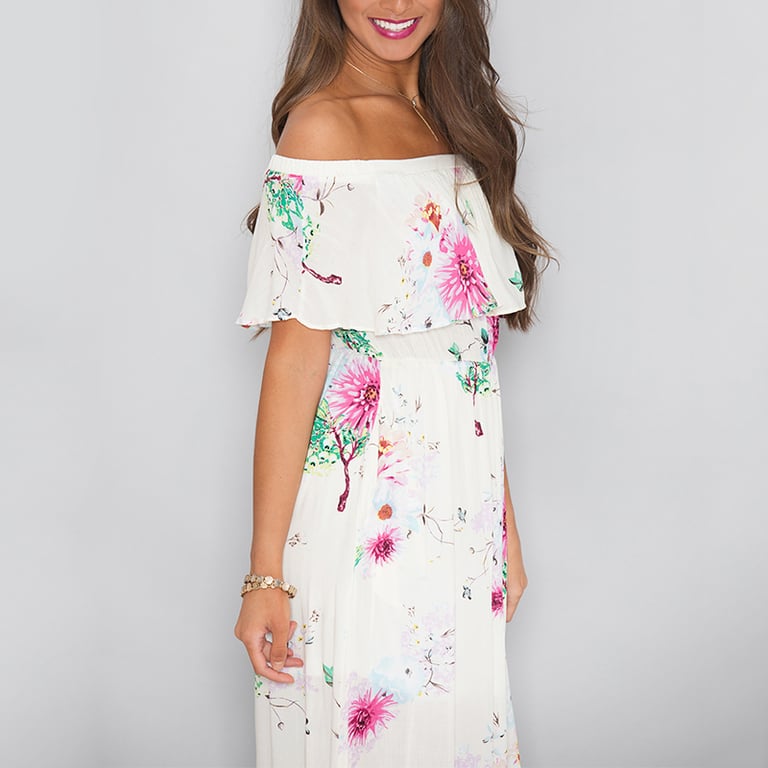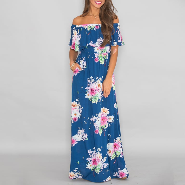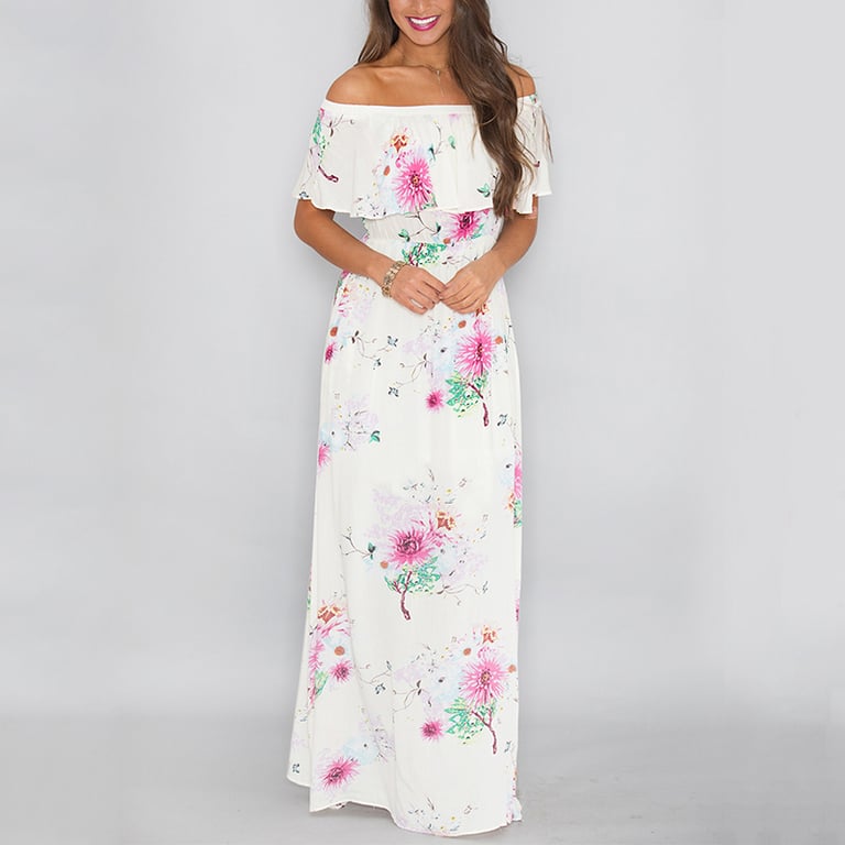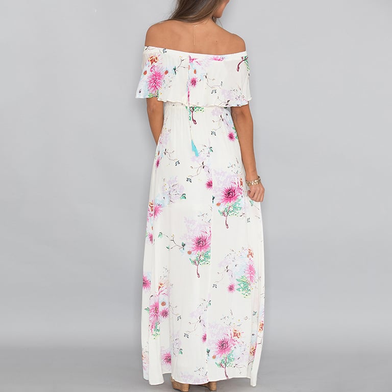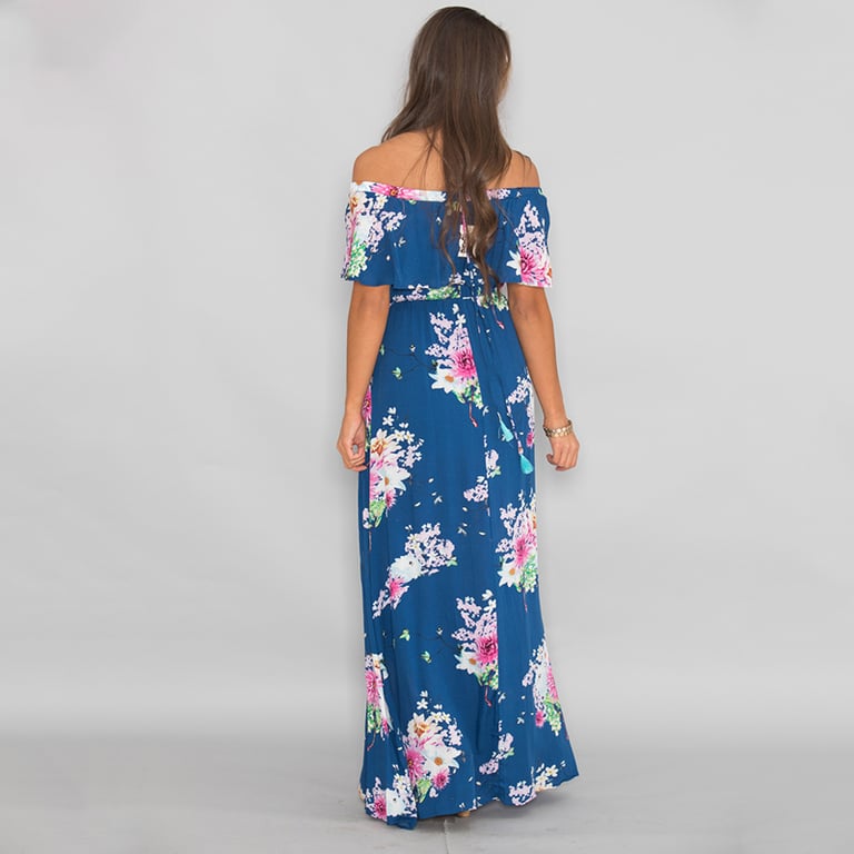 Long summer women's floral dress with a slit.