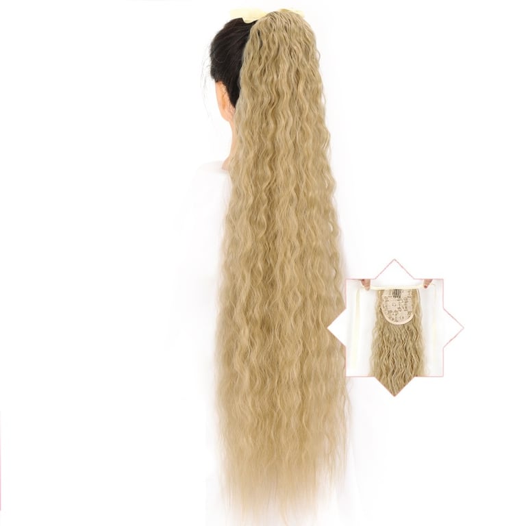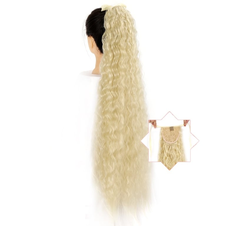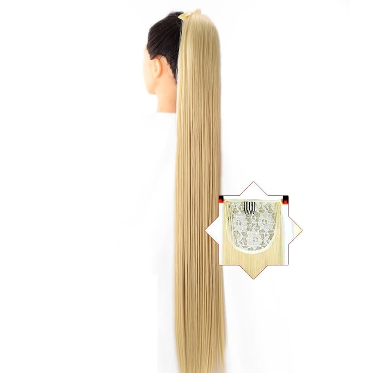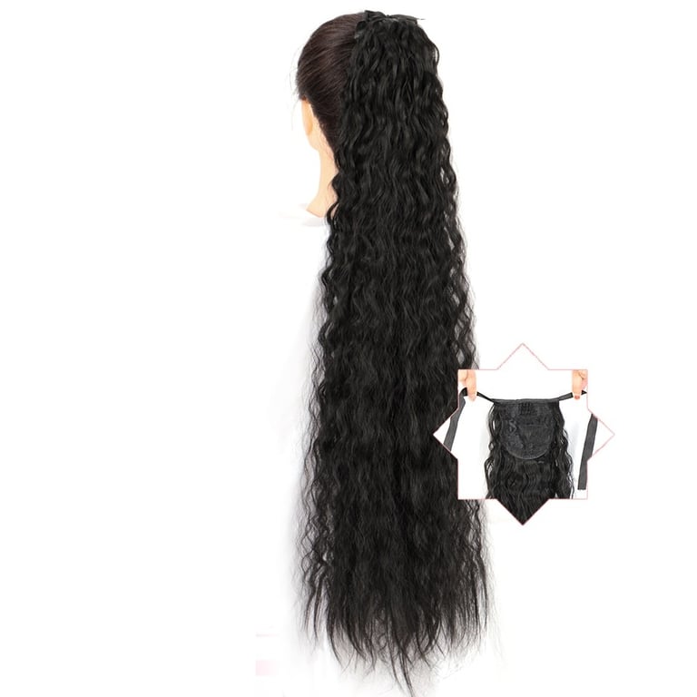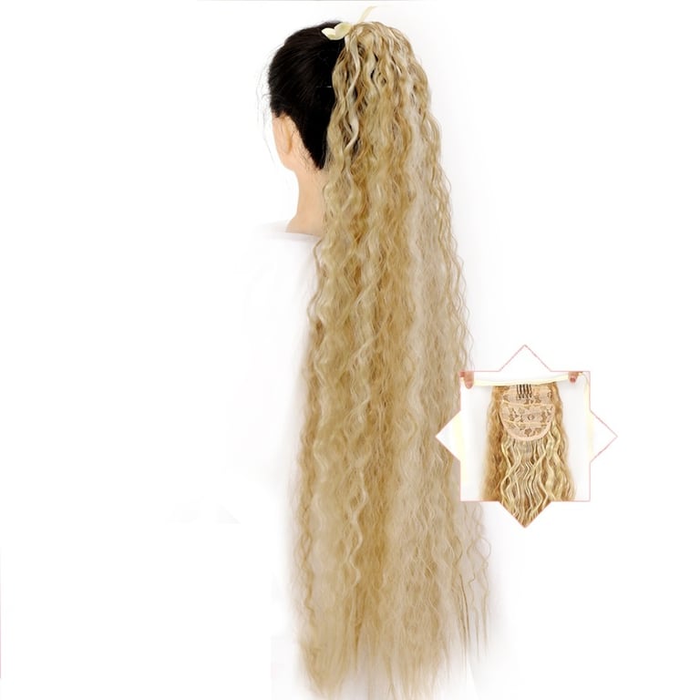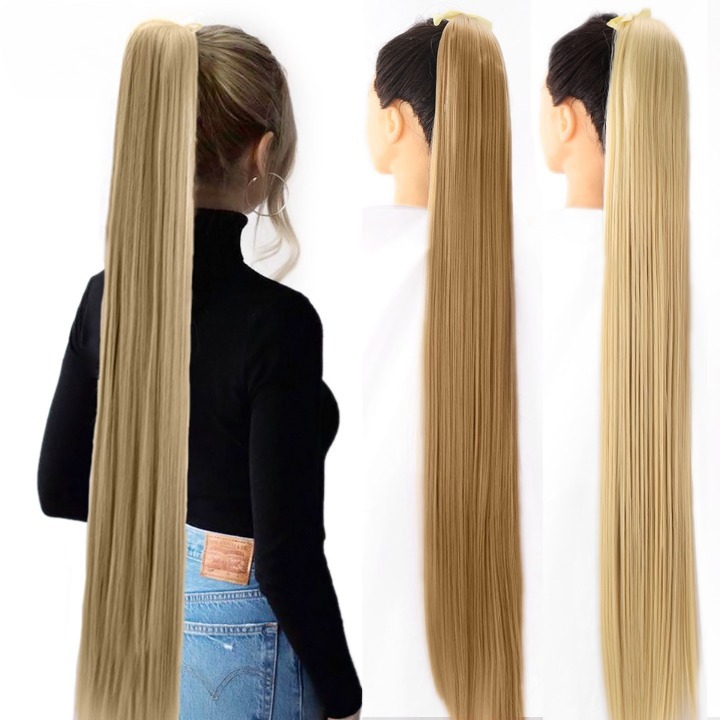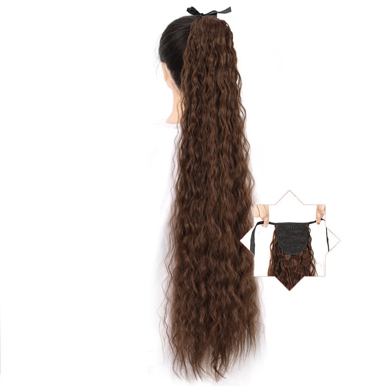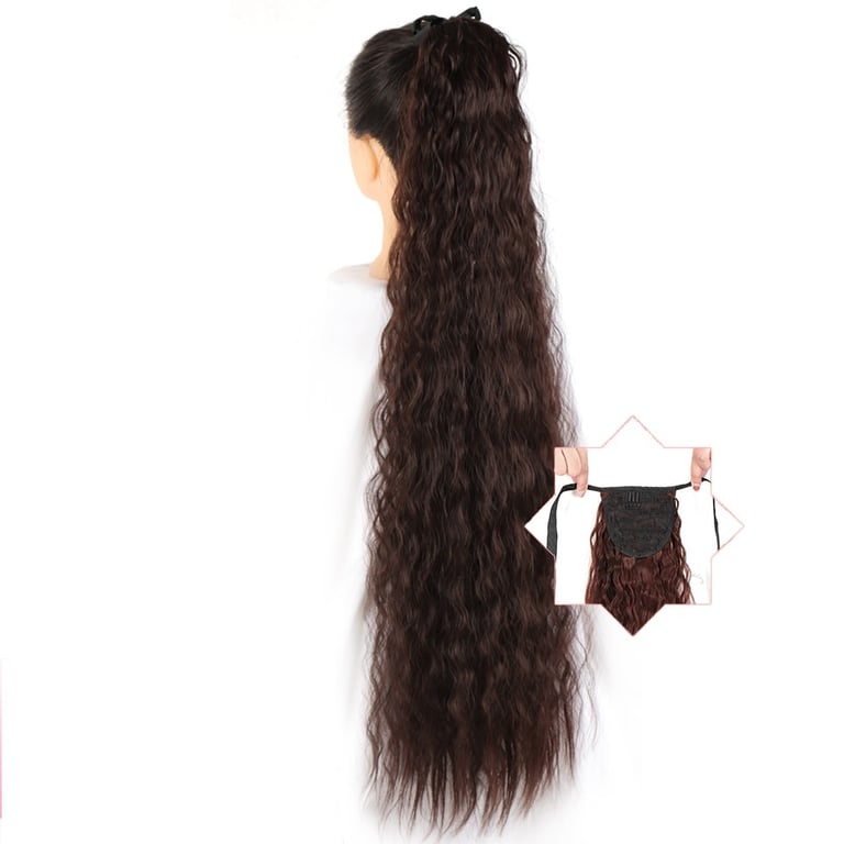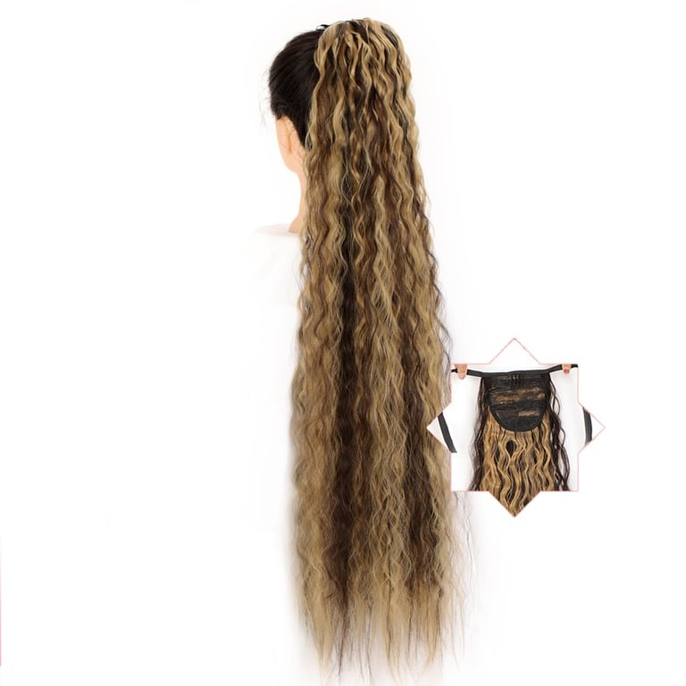 Long synthetic hair with a drawstring for securing in a ponytail – various options