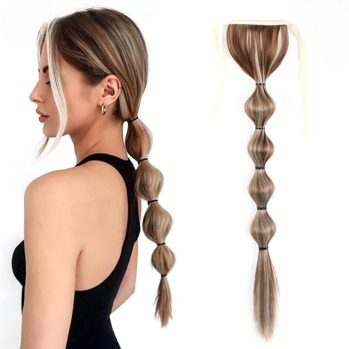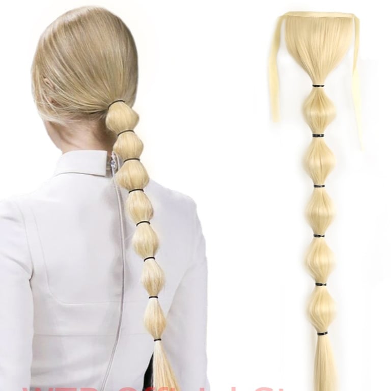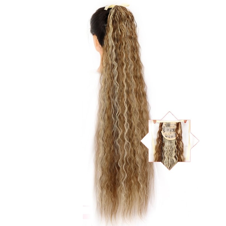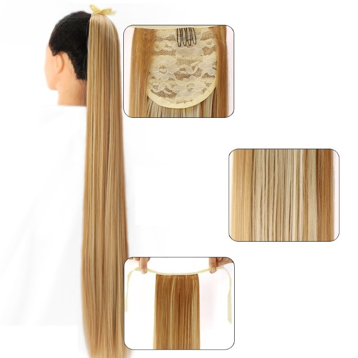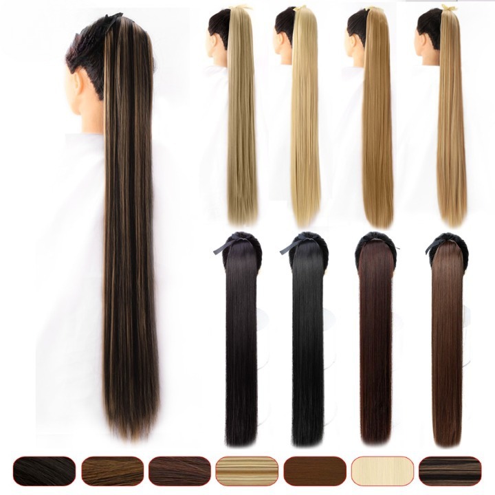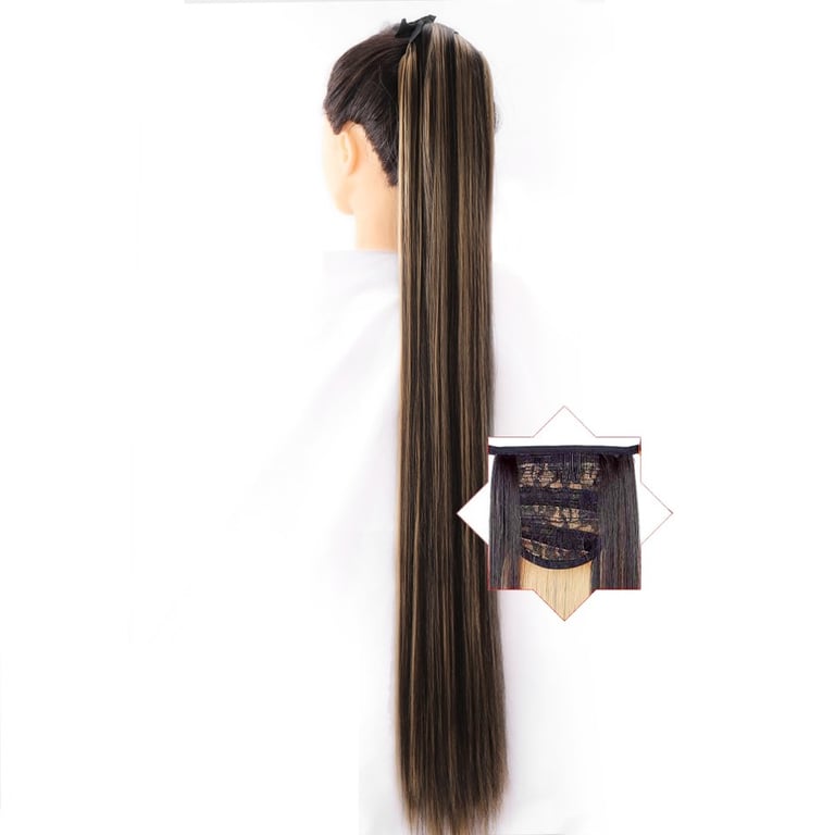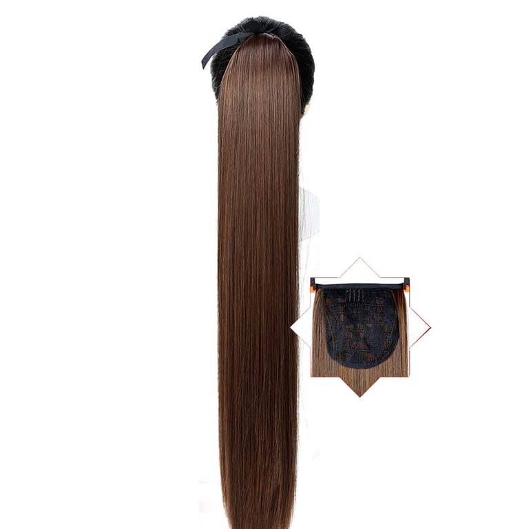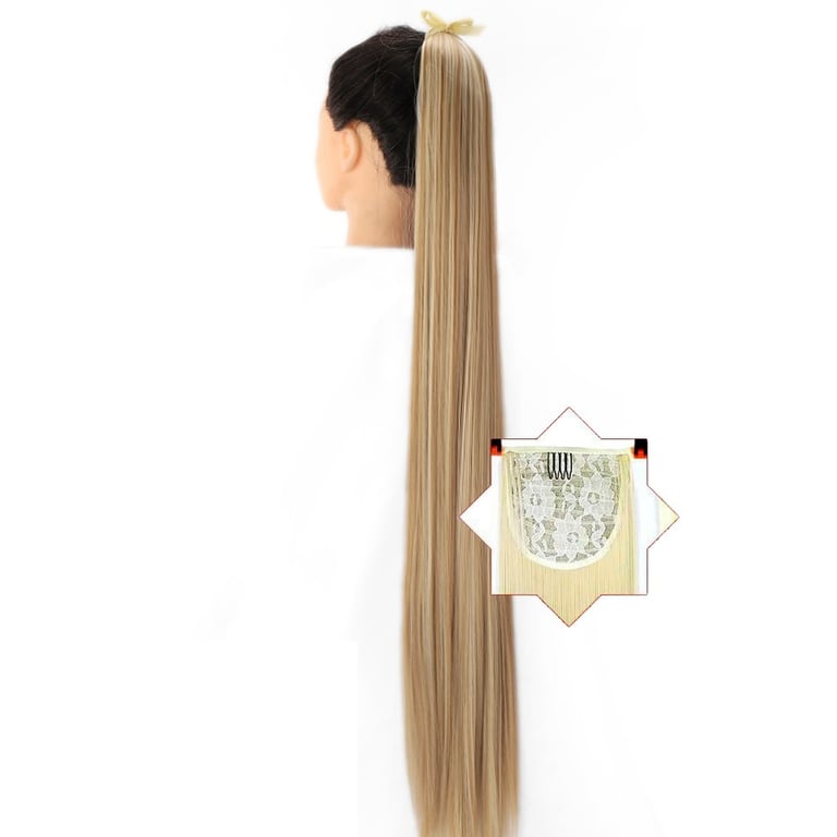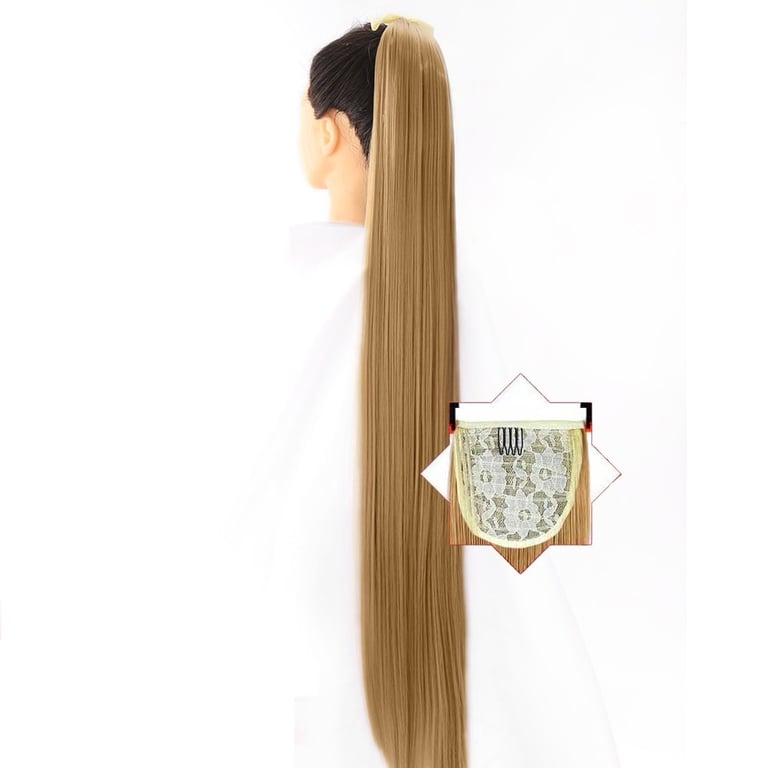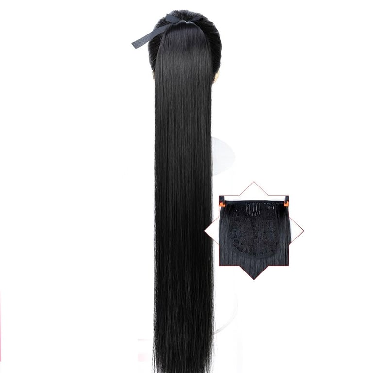 Long synthetic hair with a drawstring for securing in a ponytail – various options