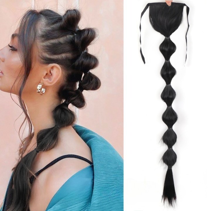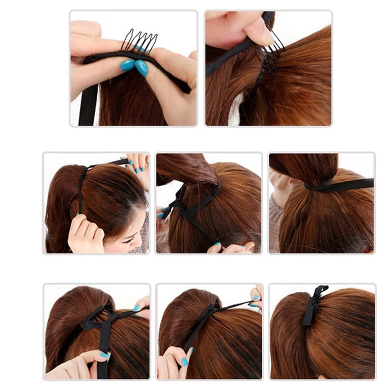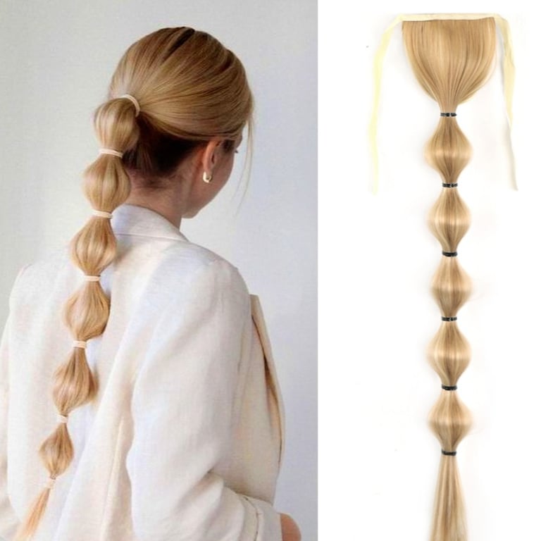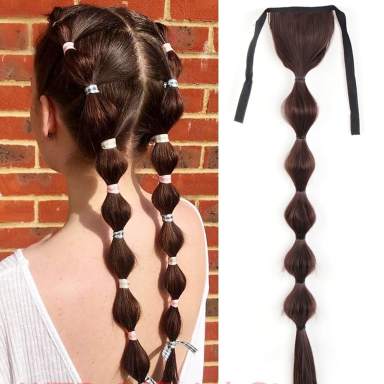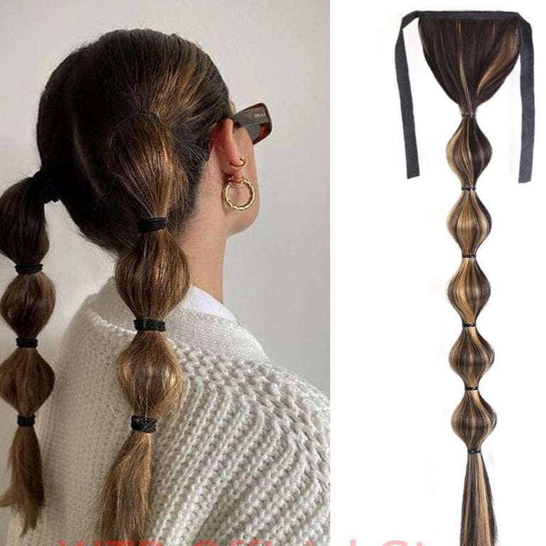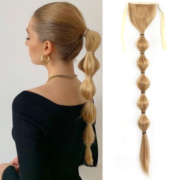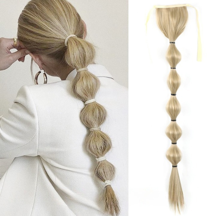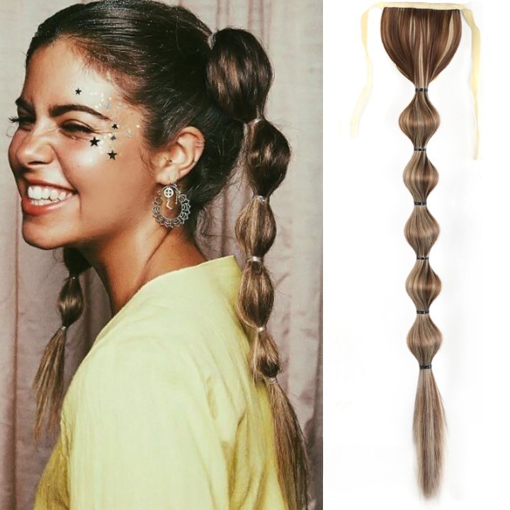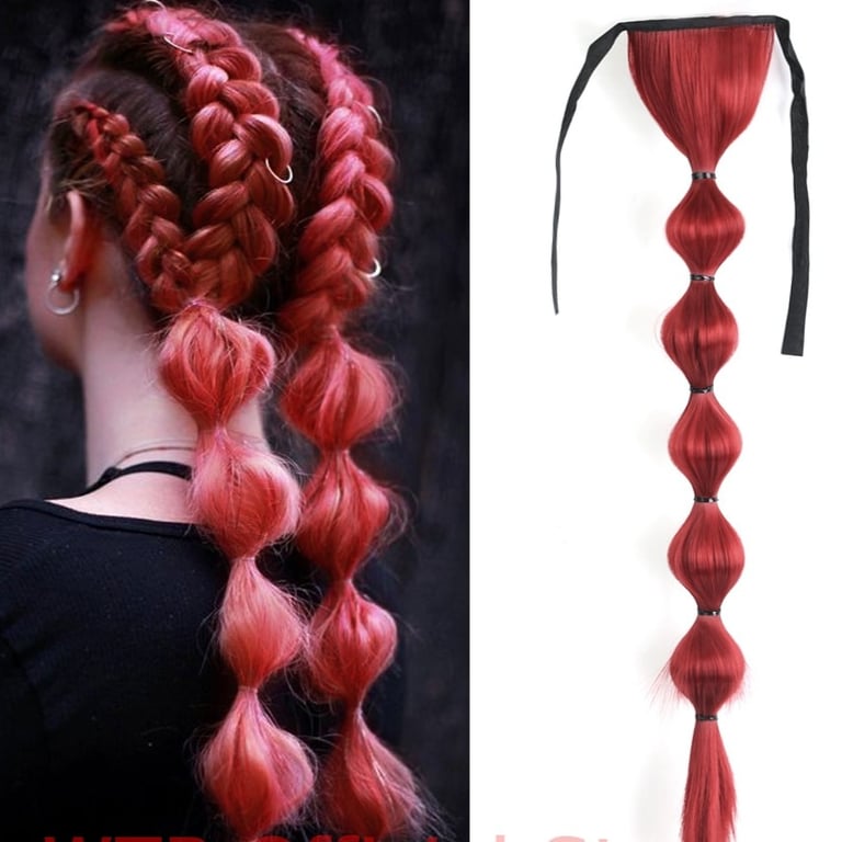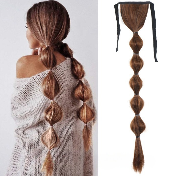 Long synthetic hair with a drawstring for securing in a ponytail – various options