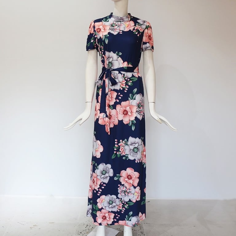 Long dress with a floral print and tie.