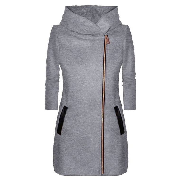 Long women's hoodie with a zip suitable for the winter season.