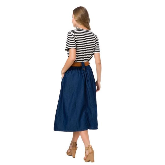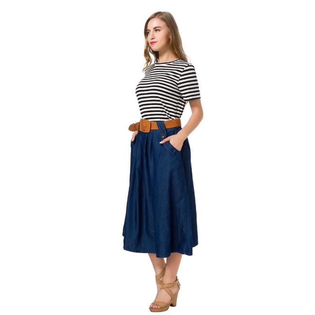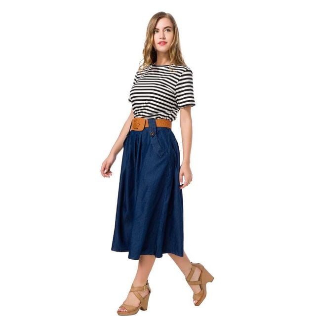 The loose denim skirt with a belt will be a comfortable summer piece! The measurements provided are for the product, not the body.