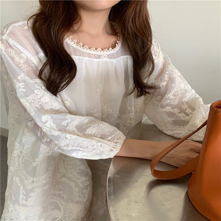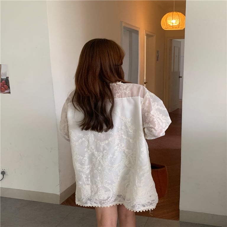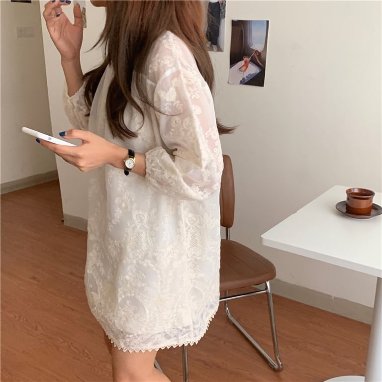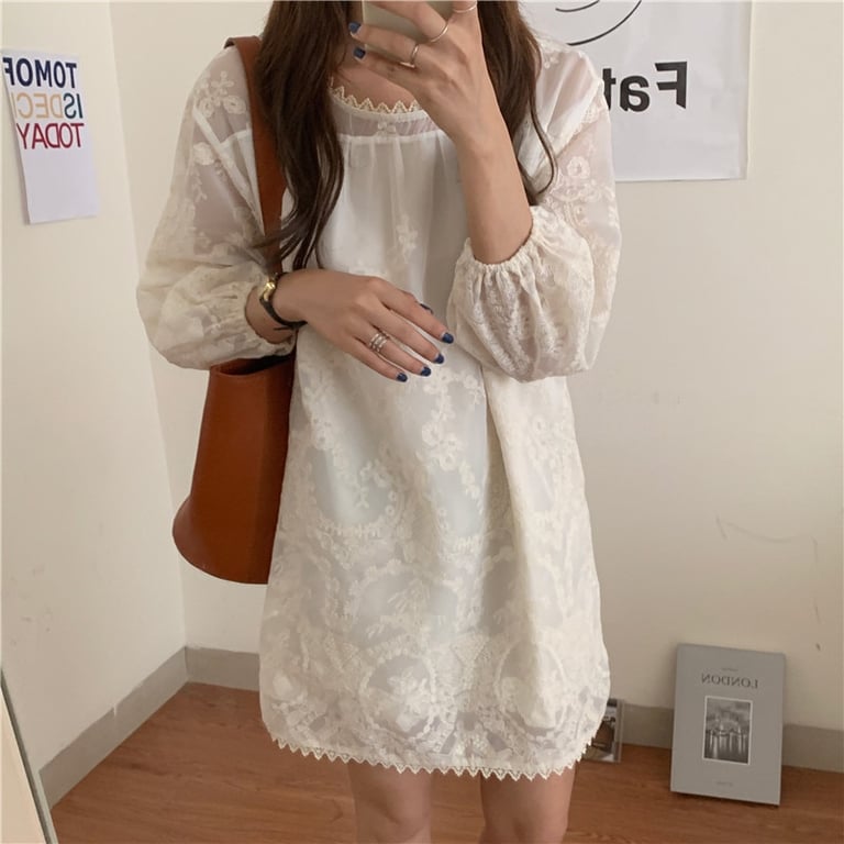 Loose white women's simple dress with lace