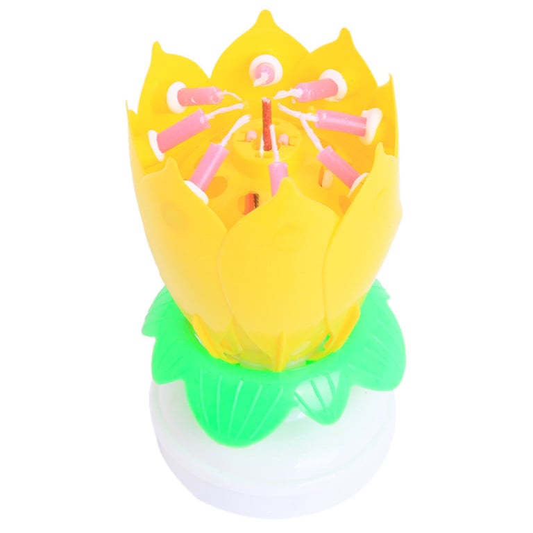 A lotus-shaped candle with music and fireworks will brighten up your celebration.