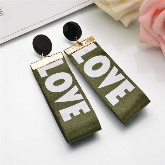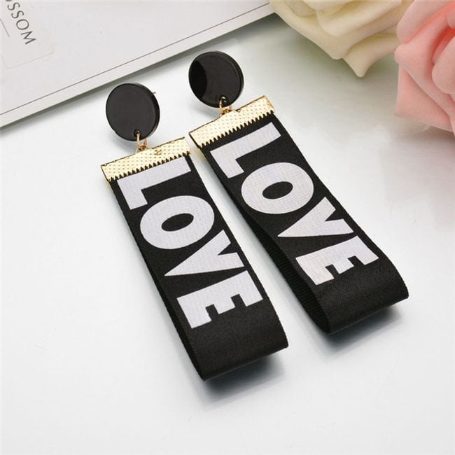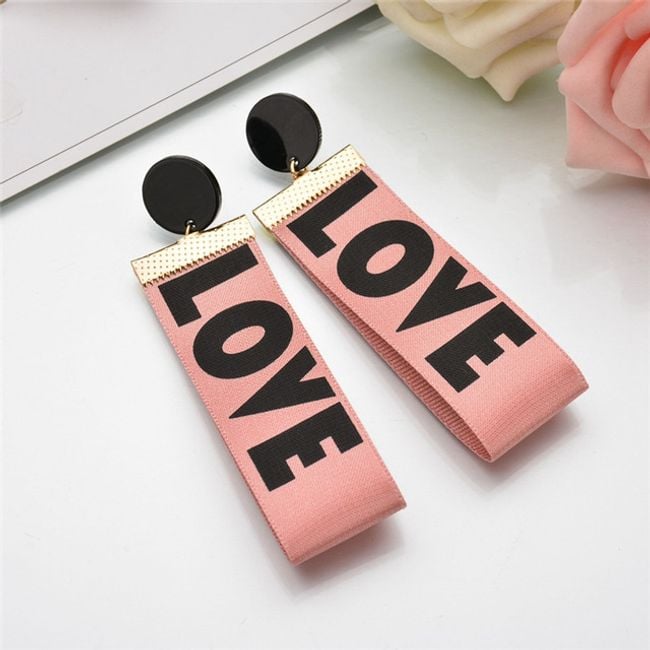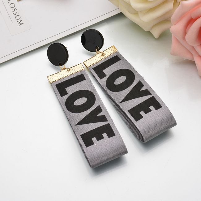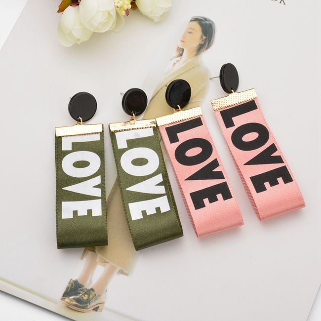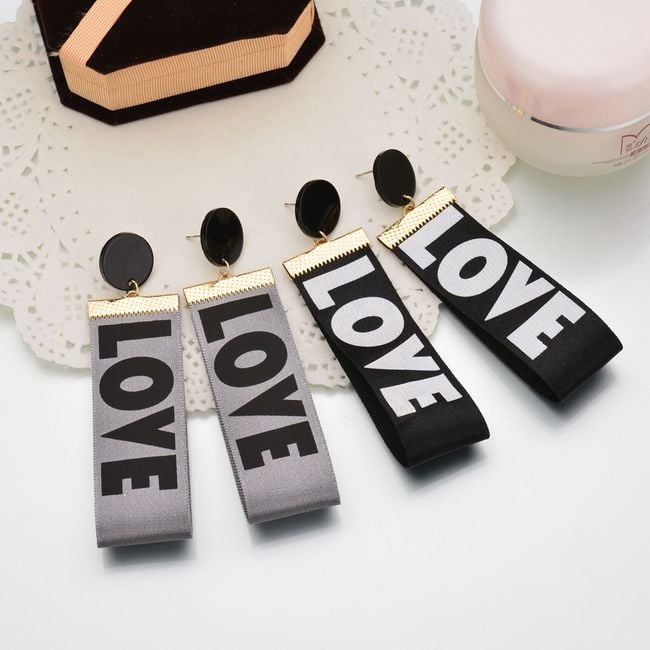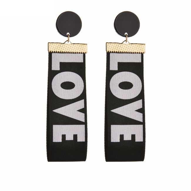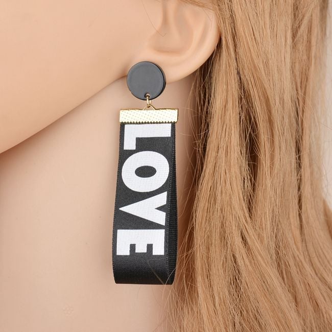 The earrings are made of a ribbon featuring a prominent LOVE inscription. They are an unusual and original accessory. You can choose from several colours.