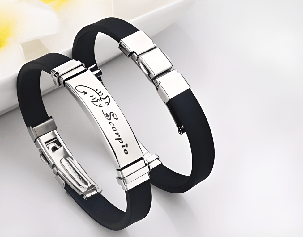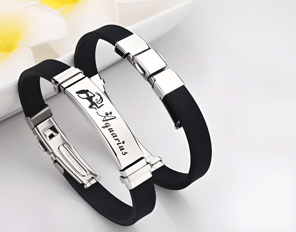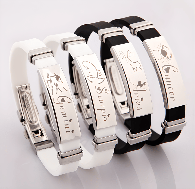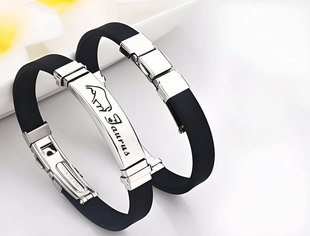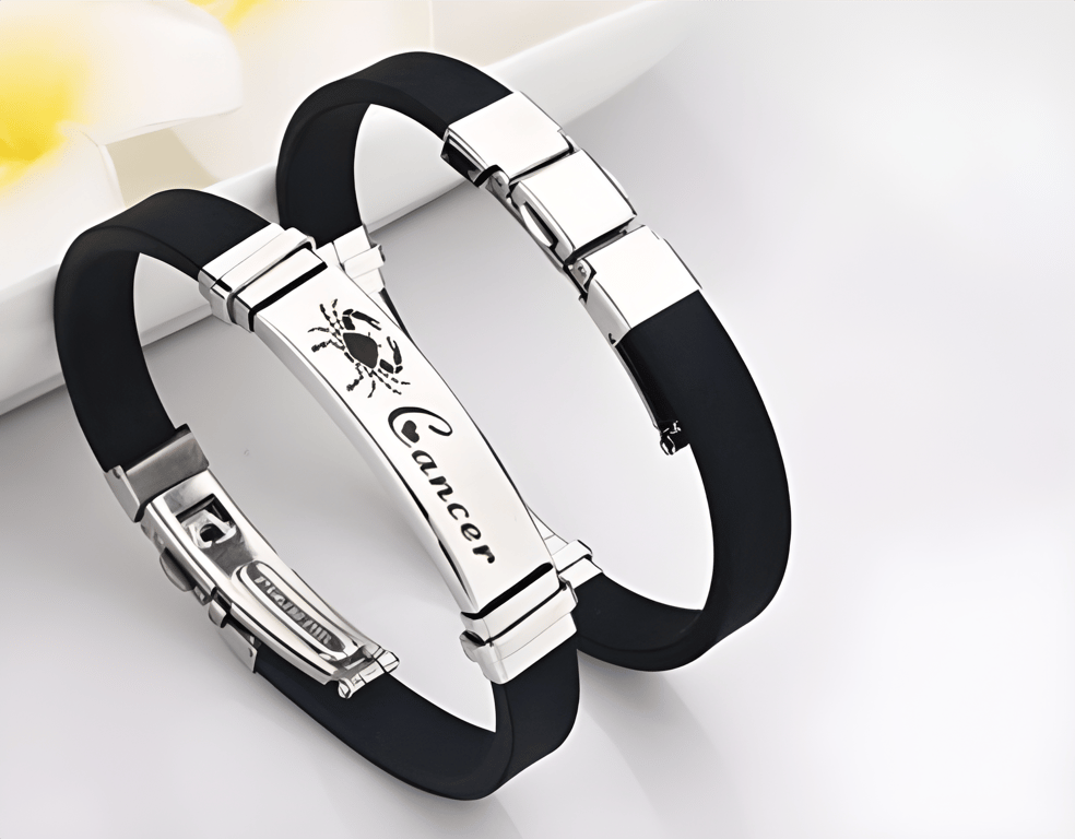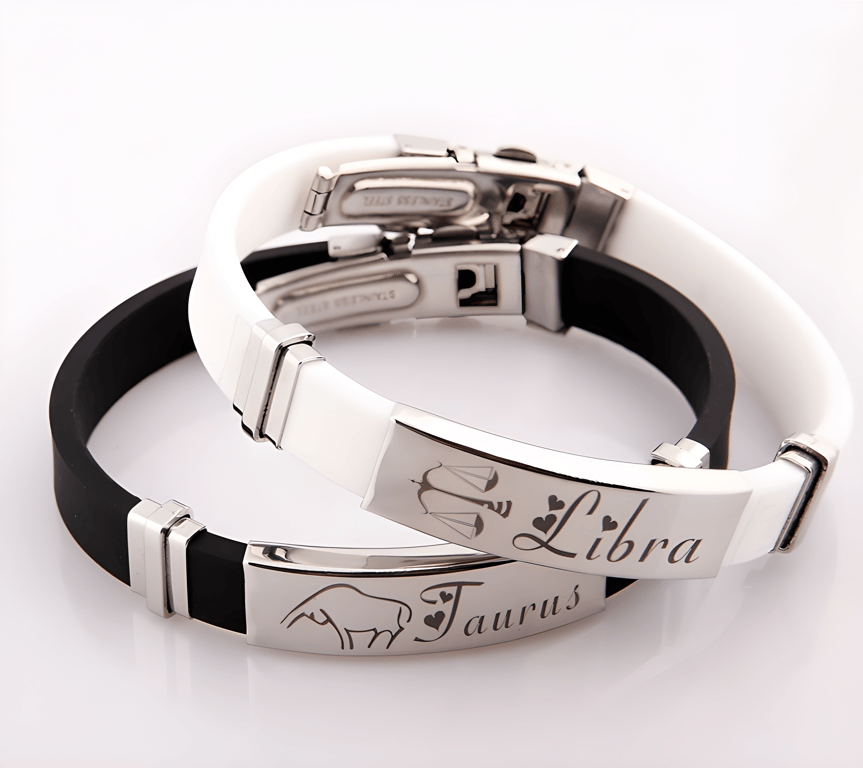 Romantic black bracelet with zodiac sign and hearts! Personalise your forearm with a choice of 12 zodiac signs. The perfect gift for your loved one.
