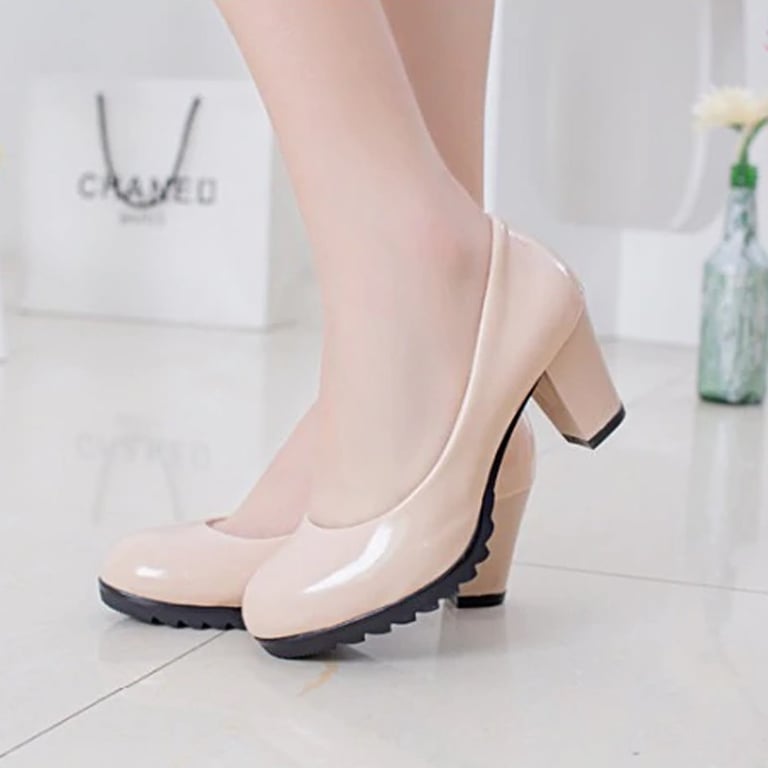 Women's low-heeled pumps for wearing a stylish outfit.
