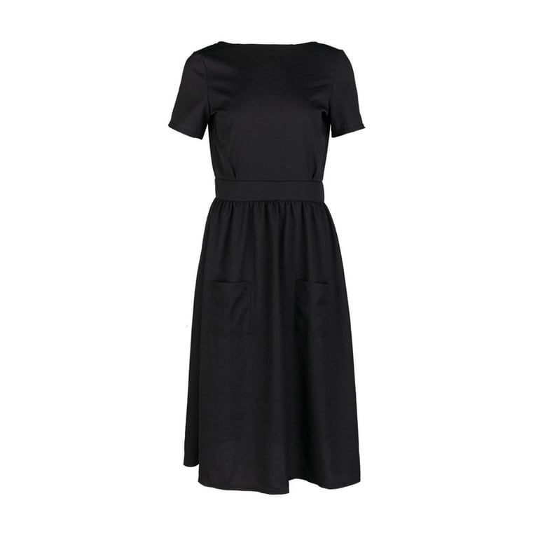 Women's casual dress with short sleeves and pockets.