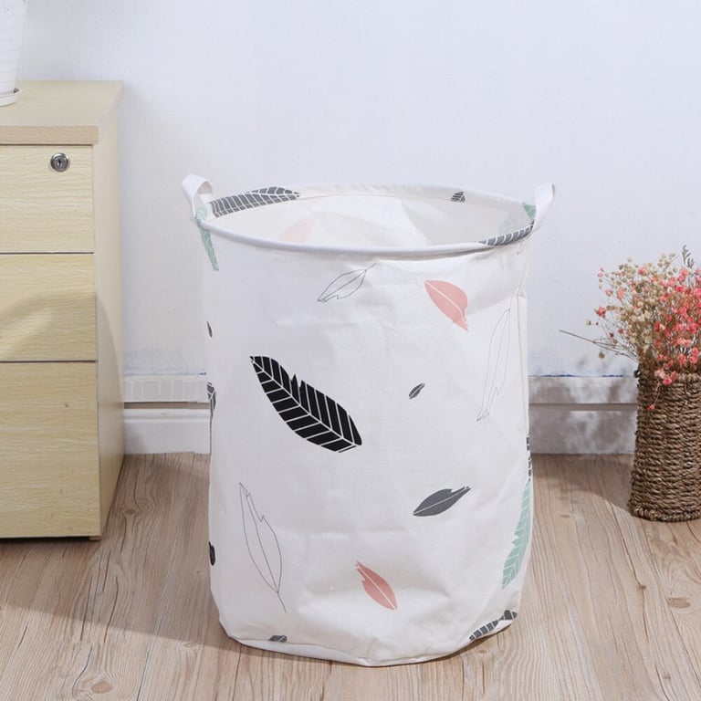 Laundry storage basket. Print with a leaf motif. Two handles for easy carrying.