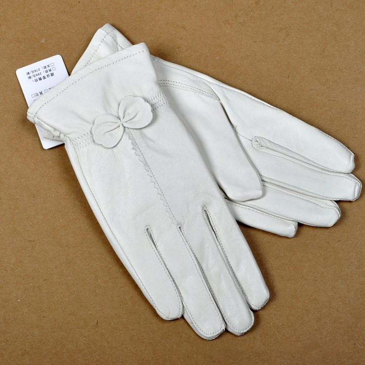 Women's leather gloves with a bow.