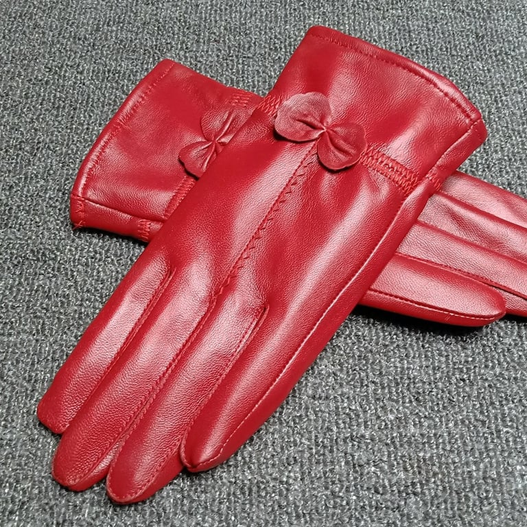 LuxeBloom™ Women's Leather Gloves with Bow