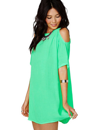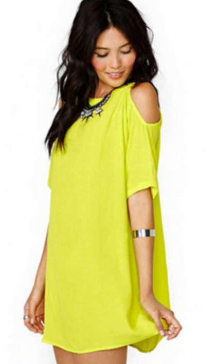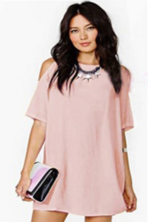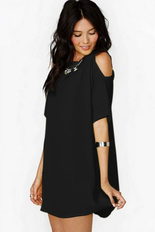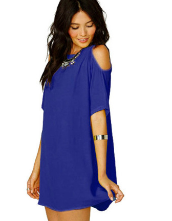 Women's Loose Mini Dress with Exposed Shoulders