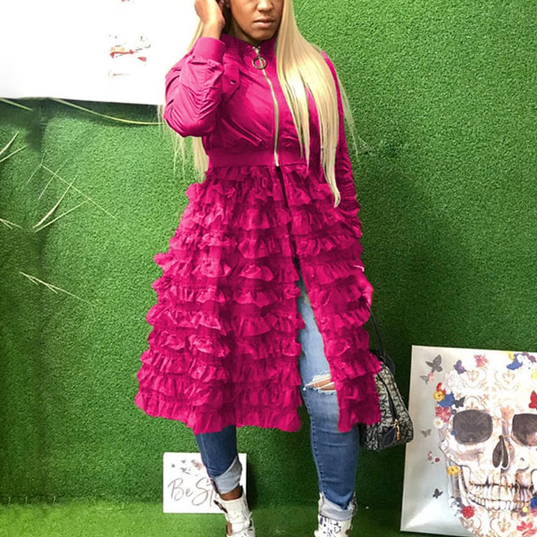 Complete your outfit with an attractive bomber jacket with ruffles.