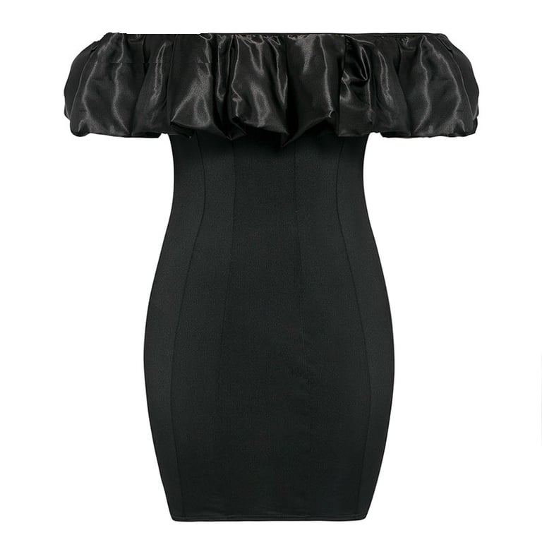 Luxury black mini dress with a satin look.