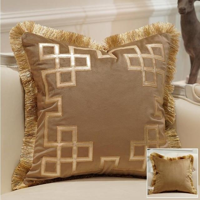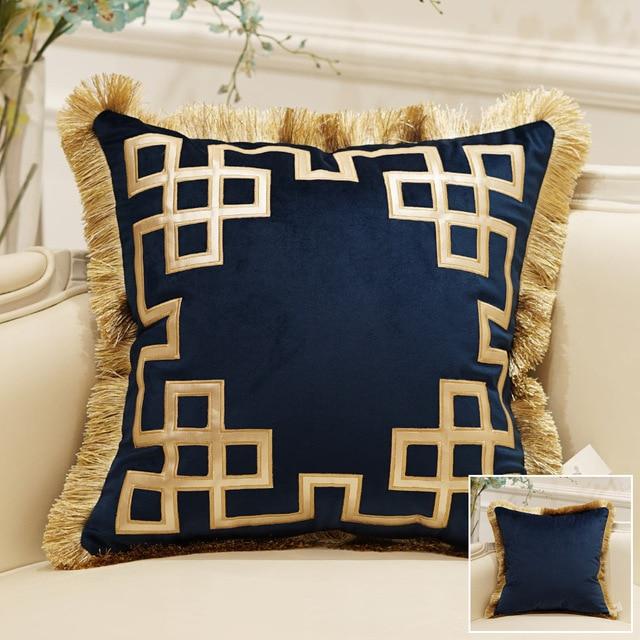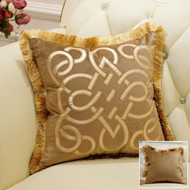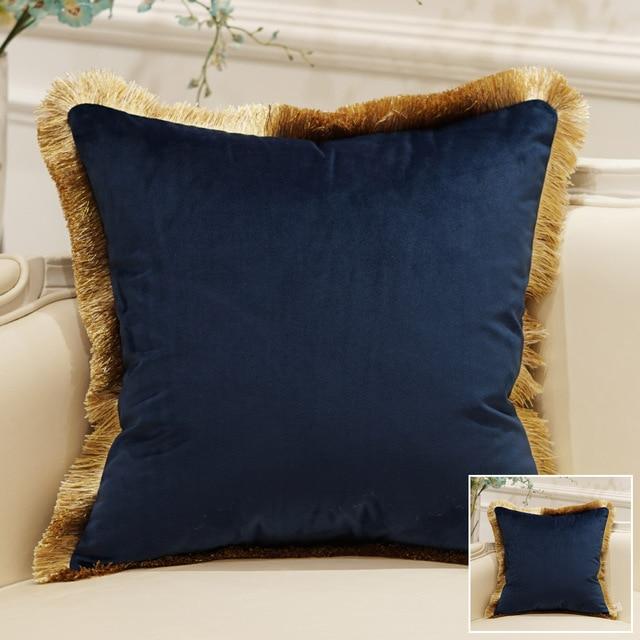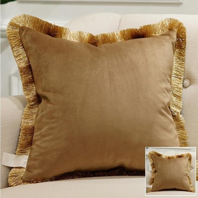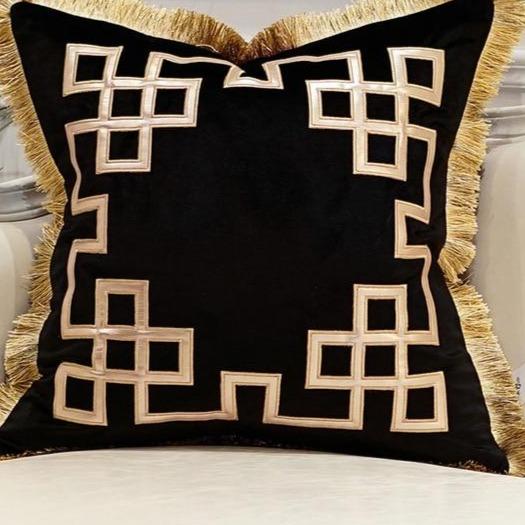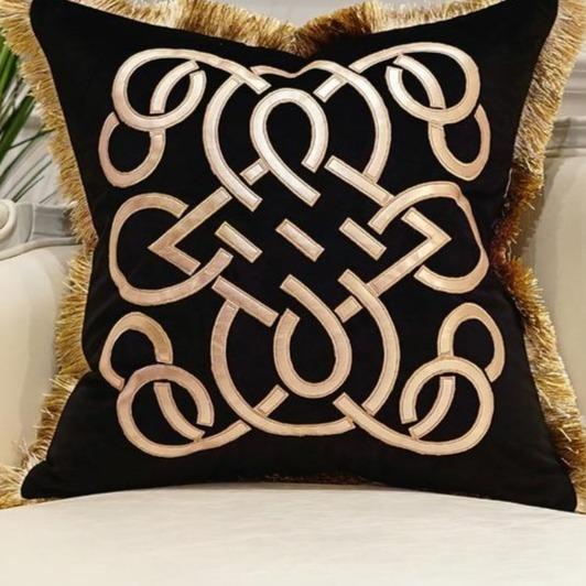 Luxury cushion cover with gold detailing and tassels. Available in multiple styles.
