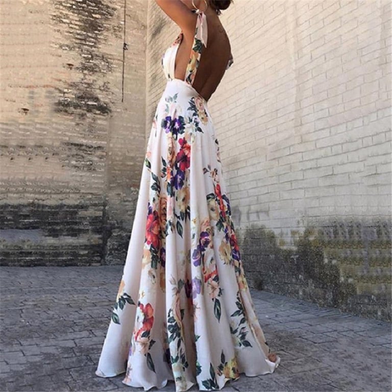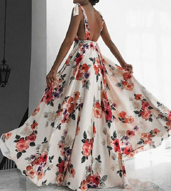 Women's luxury summer maxi dress with a floral pattern.