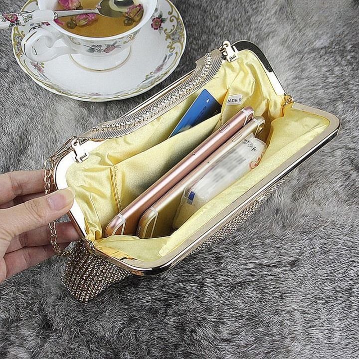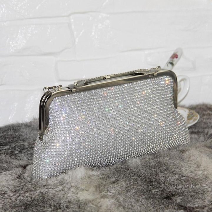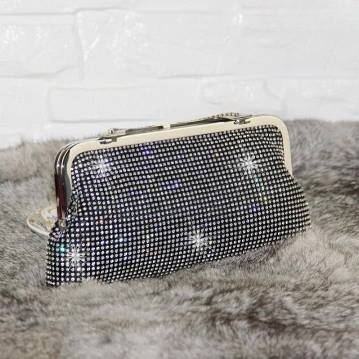 Beautiful sparkling evening clutch adorned with rhinestones.