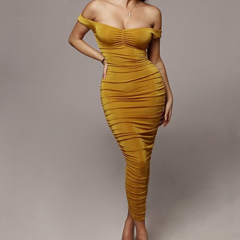 Luxury long dress with off-the-shoulder design