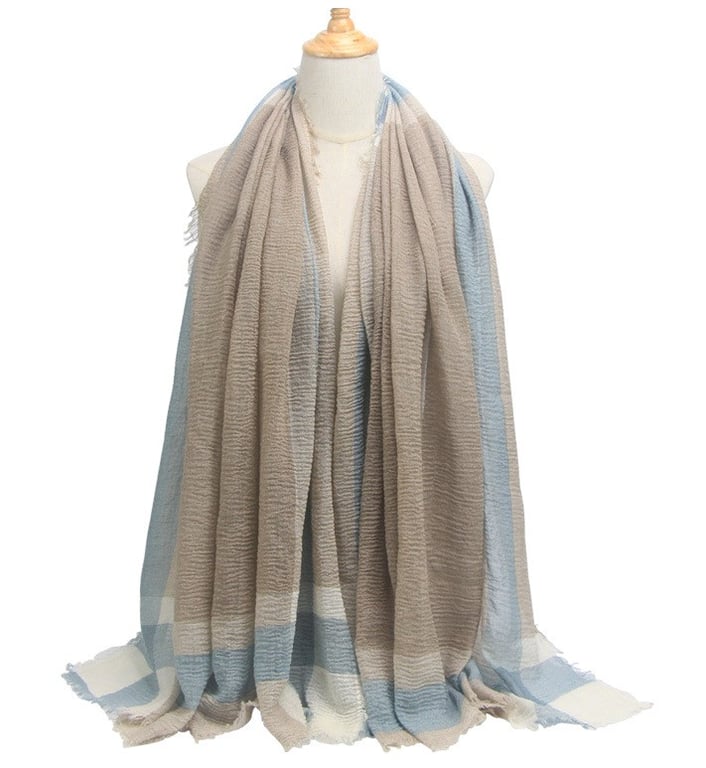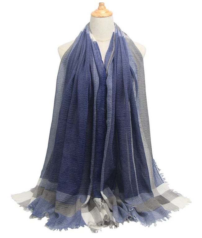 With this scarf, you will look truly luxurious and stylish. Now at a special price! **Material:** 50% cotton, 50% viscose **Dimensions:** 180 x 95 cm **Colour:** grey, khaki, dark blue, dark grey